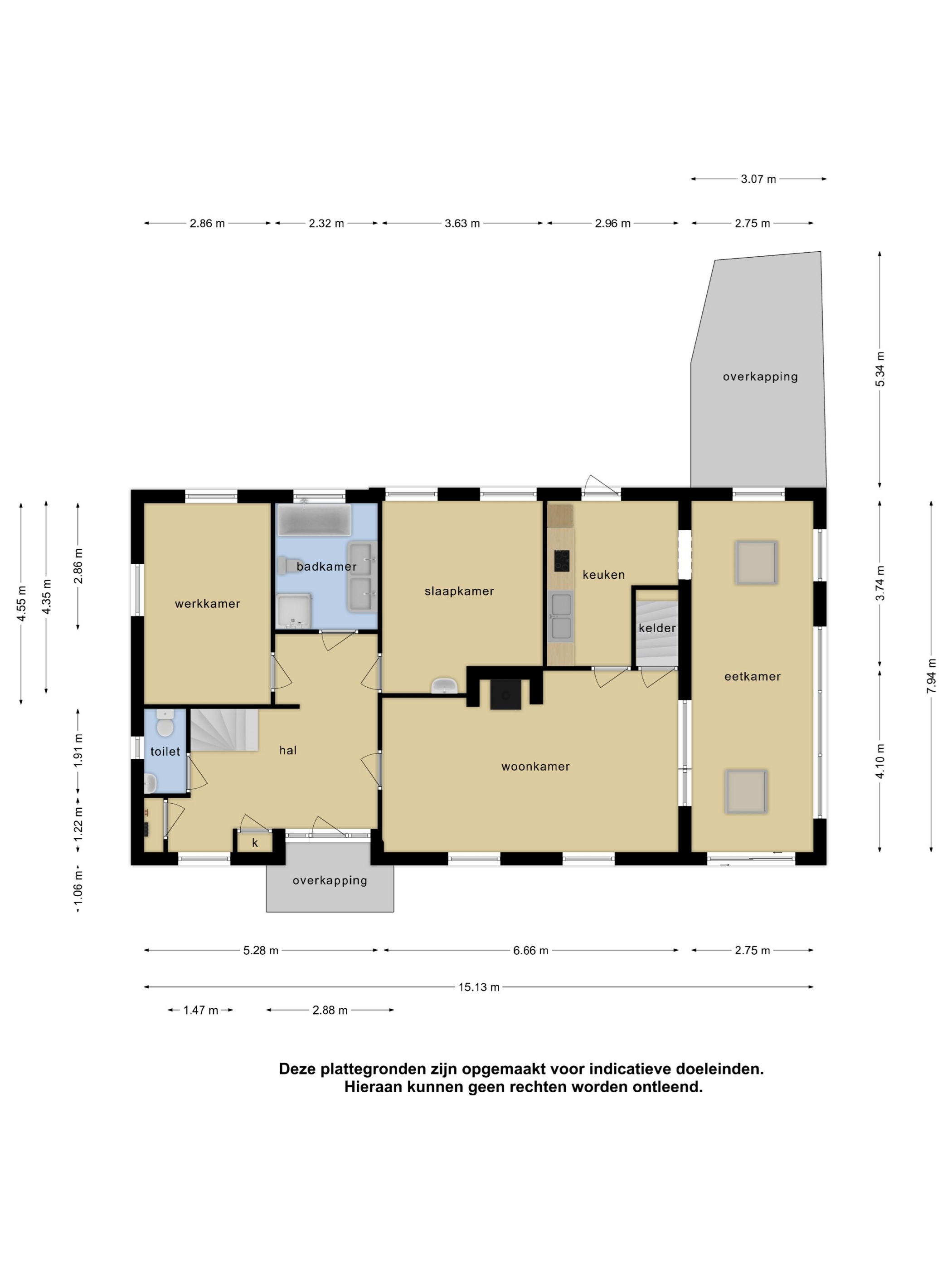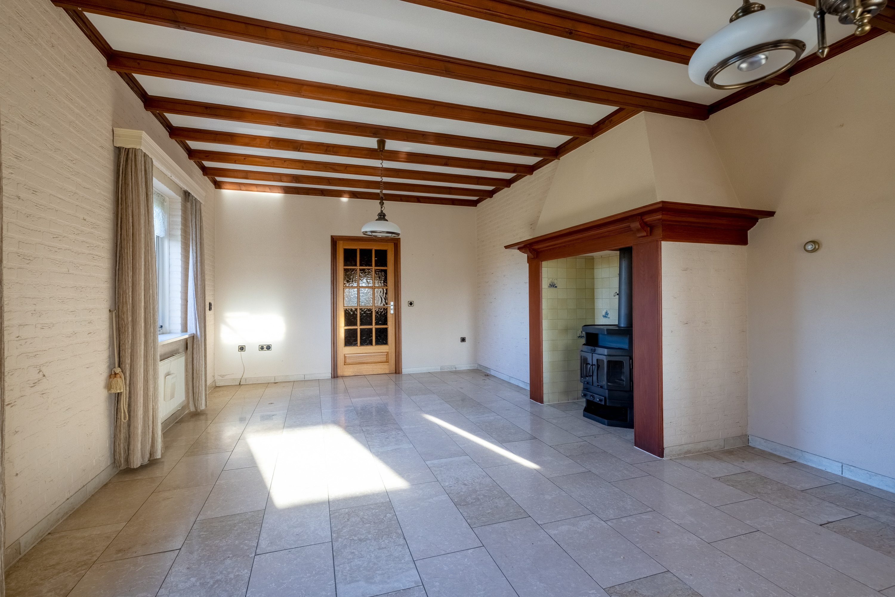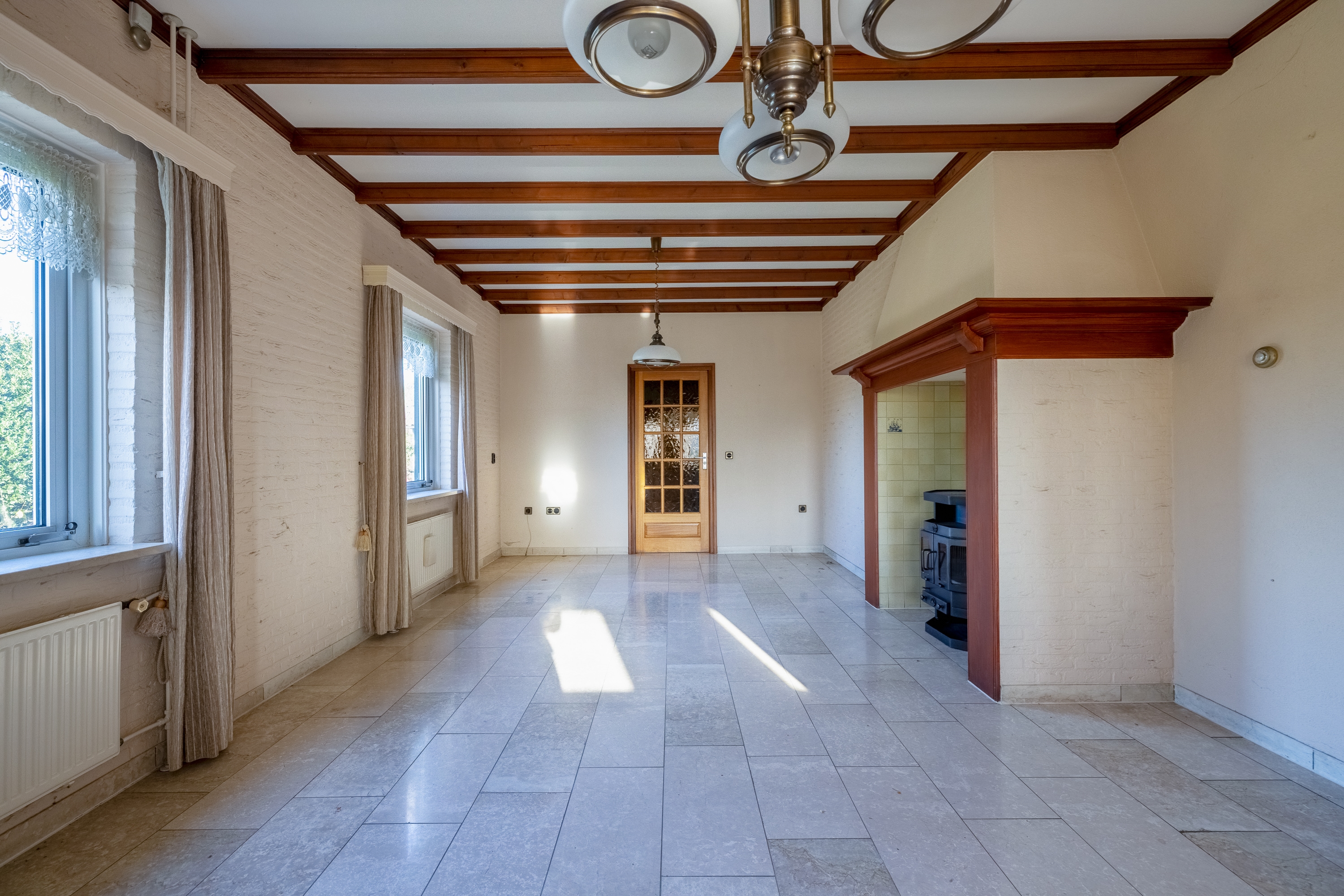 Vanuit deze centrale hal zijn de werkkamer, de slaapkamer op de begane grond, de originele badkamer en de royale woonkamer direct bereikbaar. De keuken sluit perfect aan bij de sfeer van het huis en staat via een brede toog in verbinding met de ruime eetkamer. Hierdoor ontstaat een fijne, open leefruimte met zichtlijnen die passen bij comfortabel en gezellig wonen.
