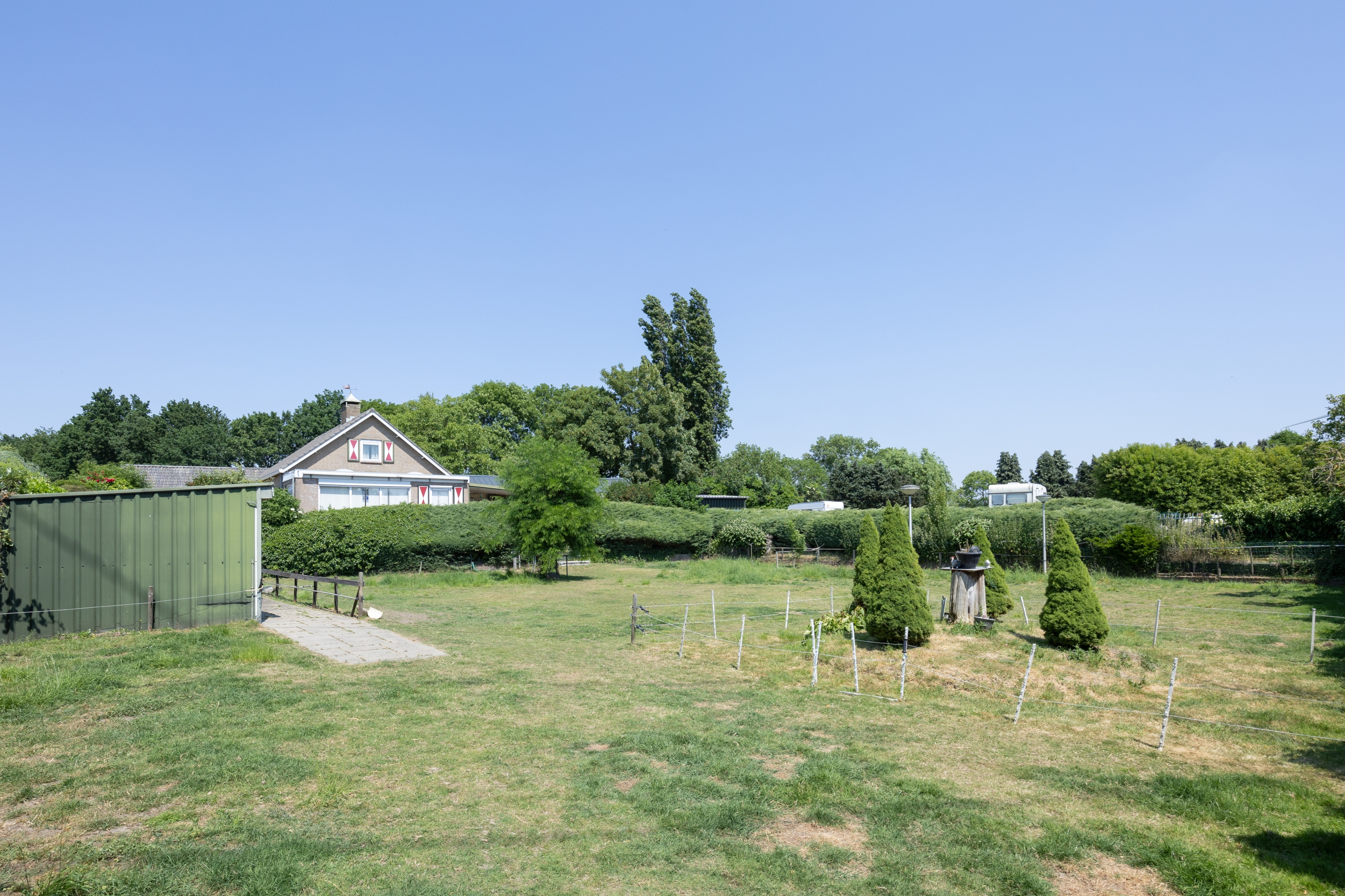 De tuin is royaal opgezet met een groot gazon, meerdere volwassen borders met vaste beplanting en volop privacy. Voor liefhebbers van buitenleven en dieren is er een paardenstal aanwezig van circa 55 m², ideaal voor het houden van paarden of andere hobbydieren.