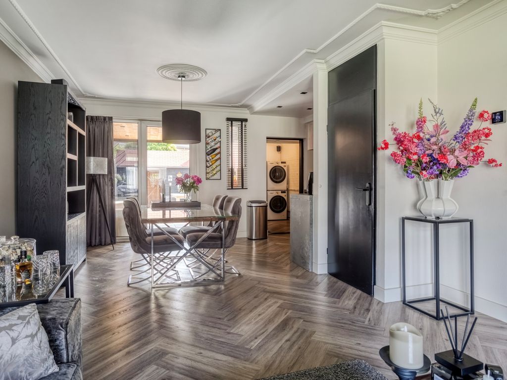 De entree bevindt zich aan de voorzijde, wat een verrassend ruimtelijk effect heeft in de woonkamer. De royale living voelt licht en open aan en staat in directe verbinding met de uitgebouwde tuinkamer, die volop mogelijkheden biedt: van gezellige loungeplek tot werkkamer of speelruimte. Aansluitend bevindt zich de praktische witgoedruimte annex berging.