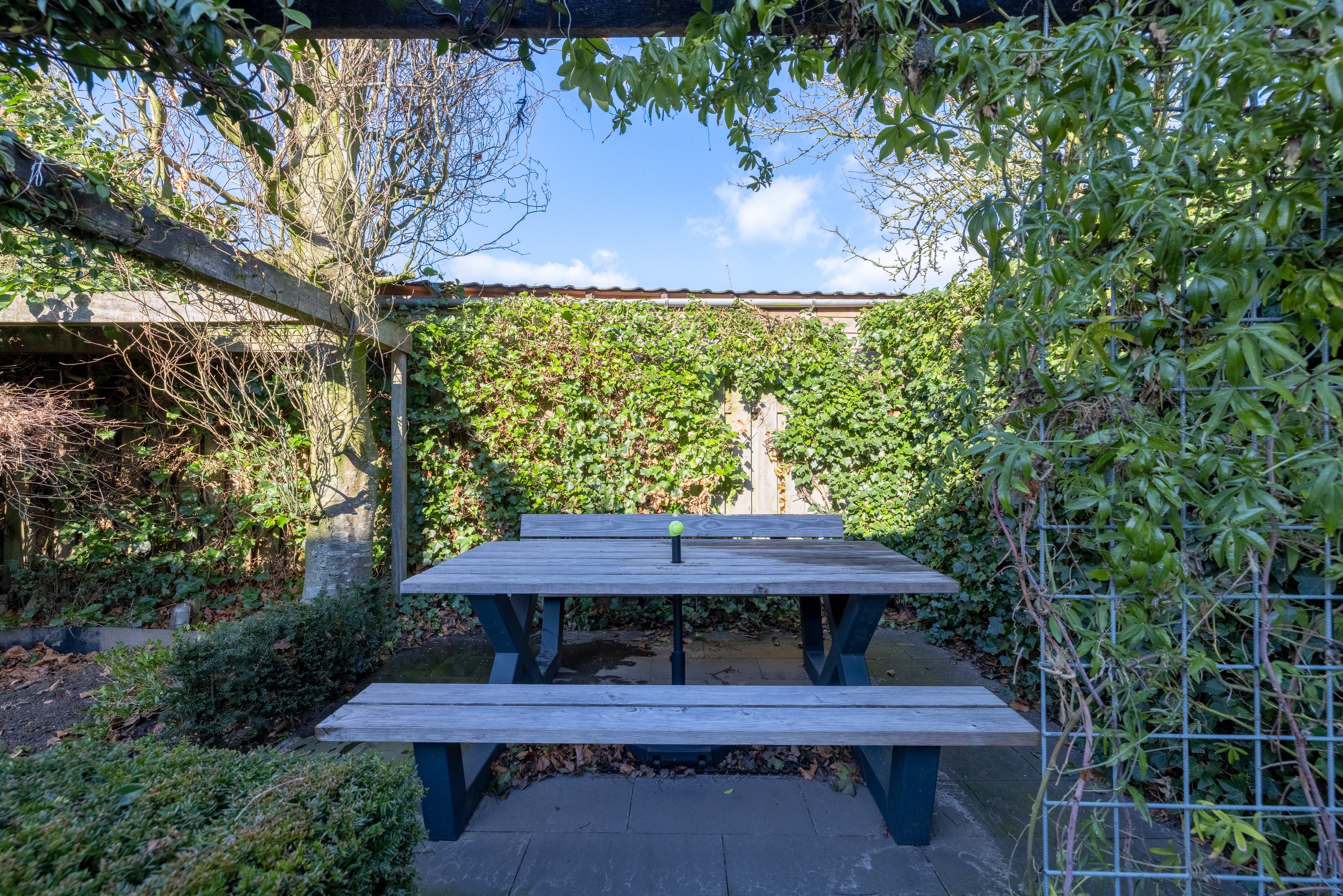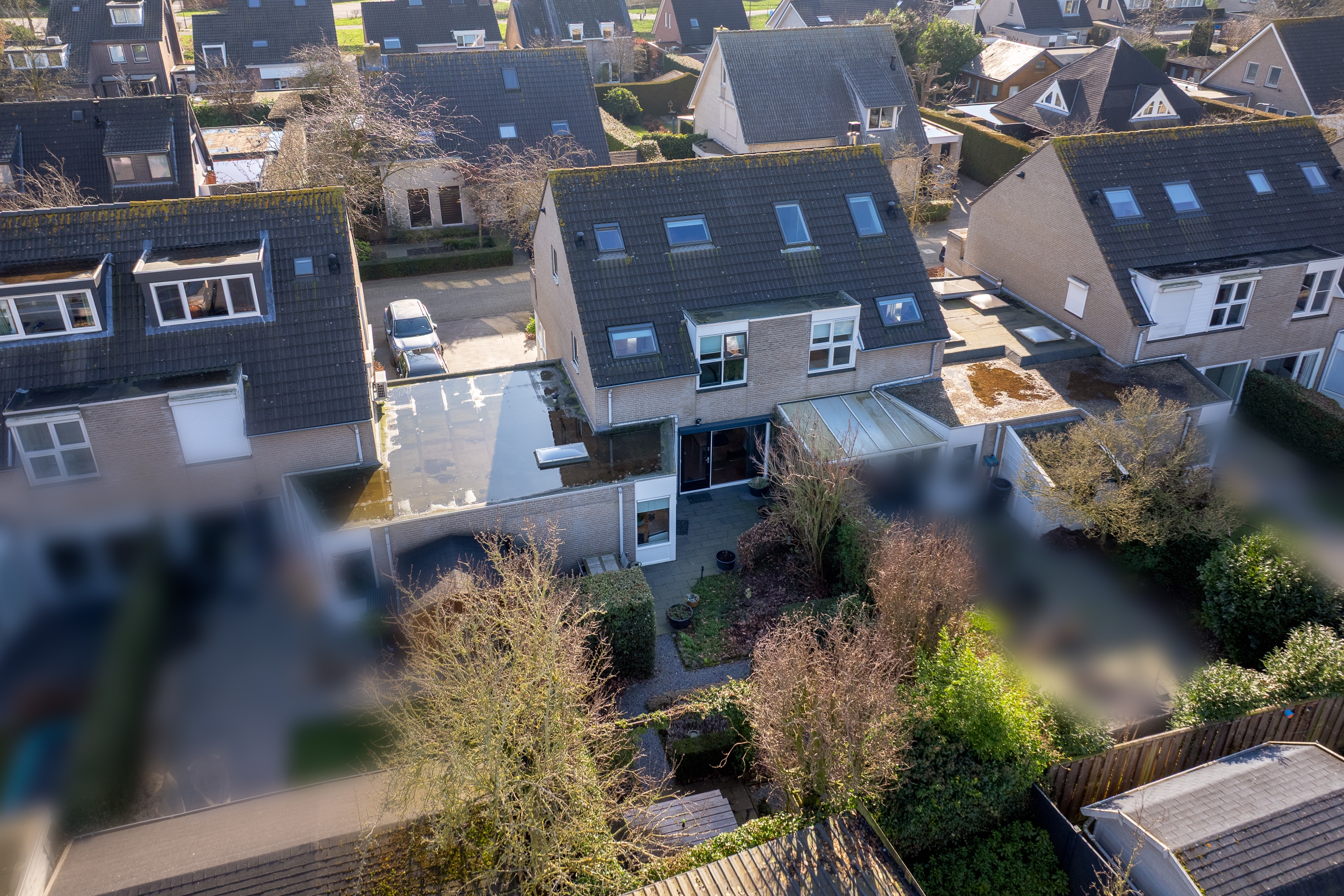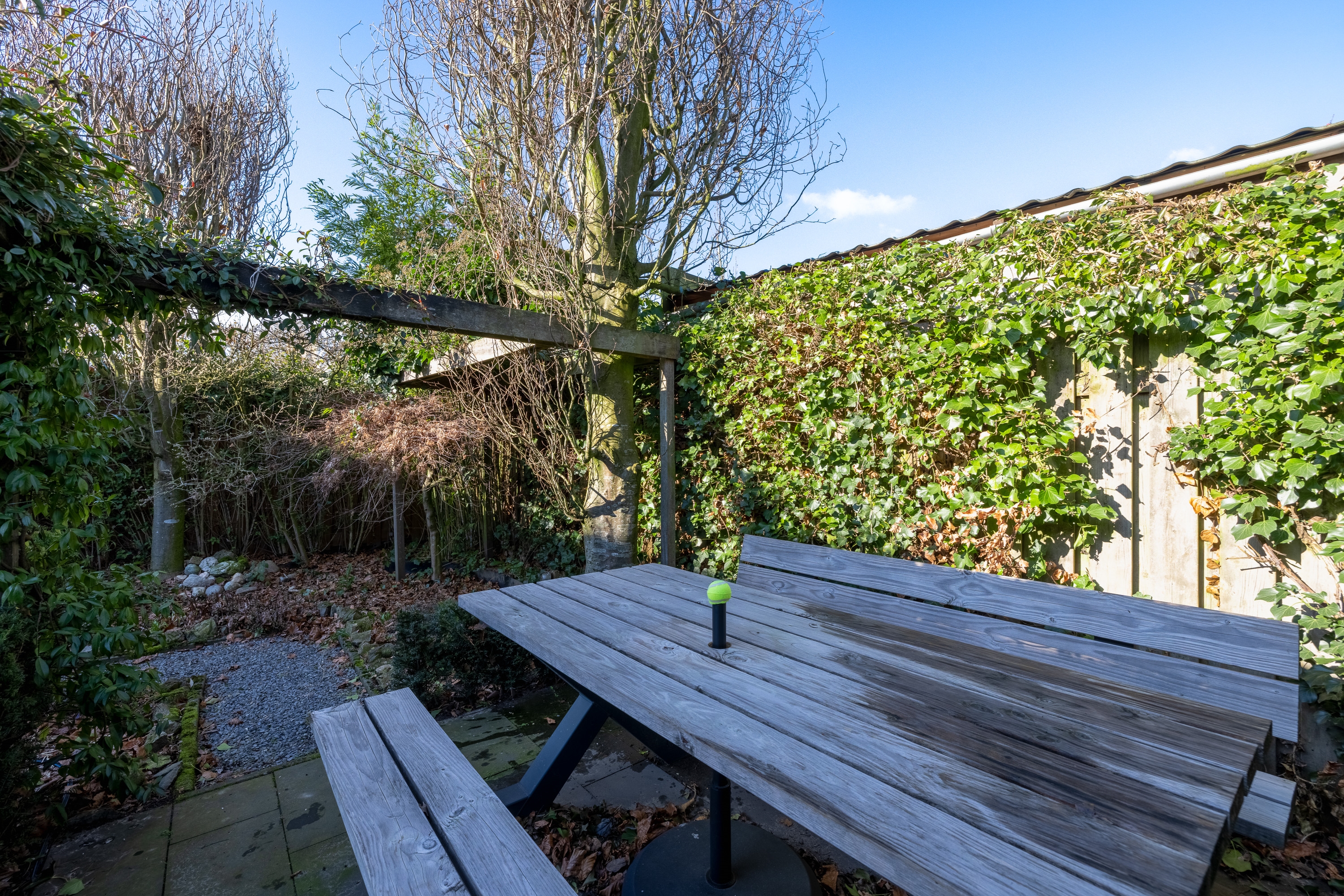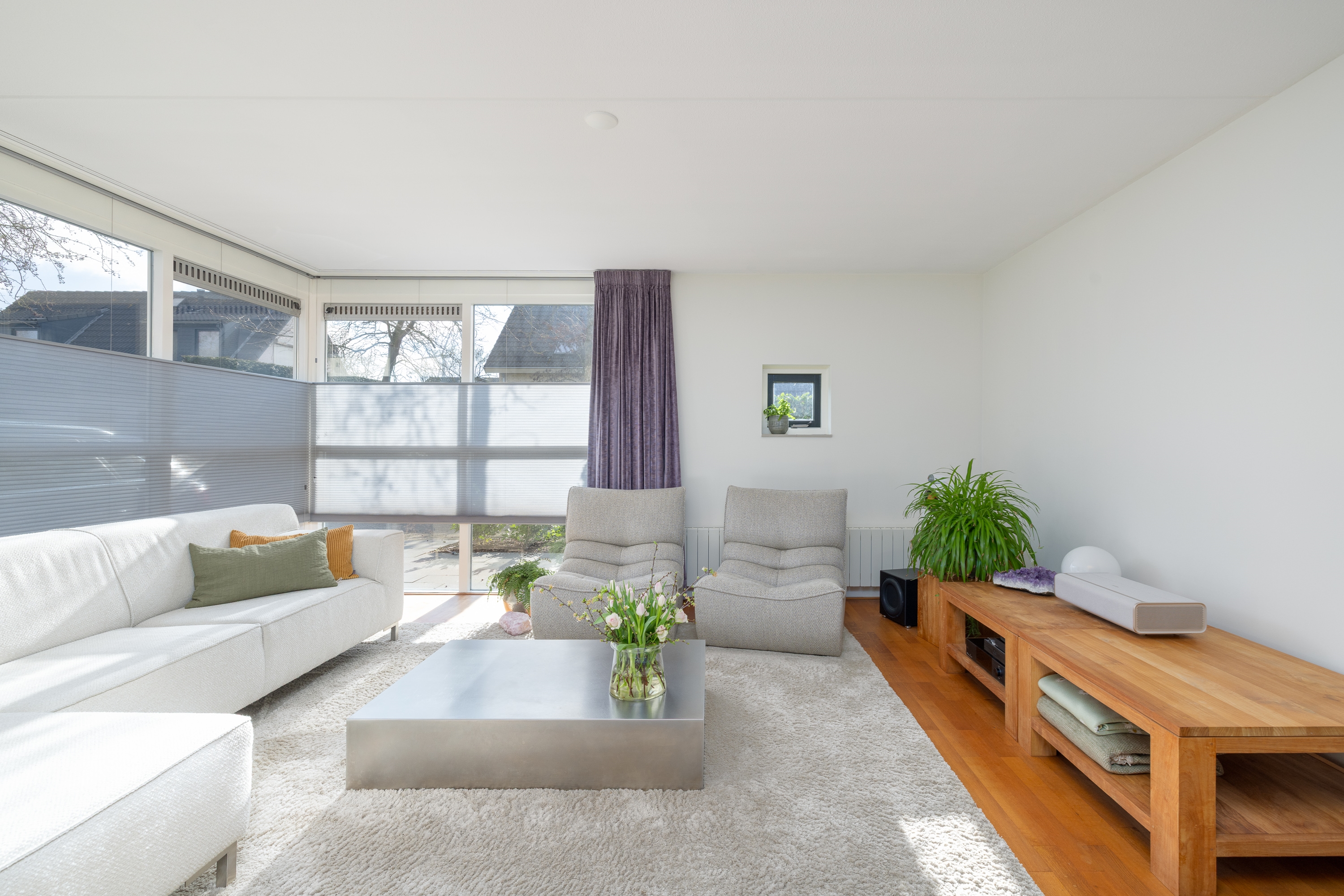 De lounge achtertuin biedt volledige privacy en voelt als een verlengstuk van de leefruimte. Beschut, stijlvol en perfect voor lange zomeravonden. De eigen oprit met ruime parkeergelegenheid en berging maken het geheel praktisch en compleet.