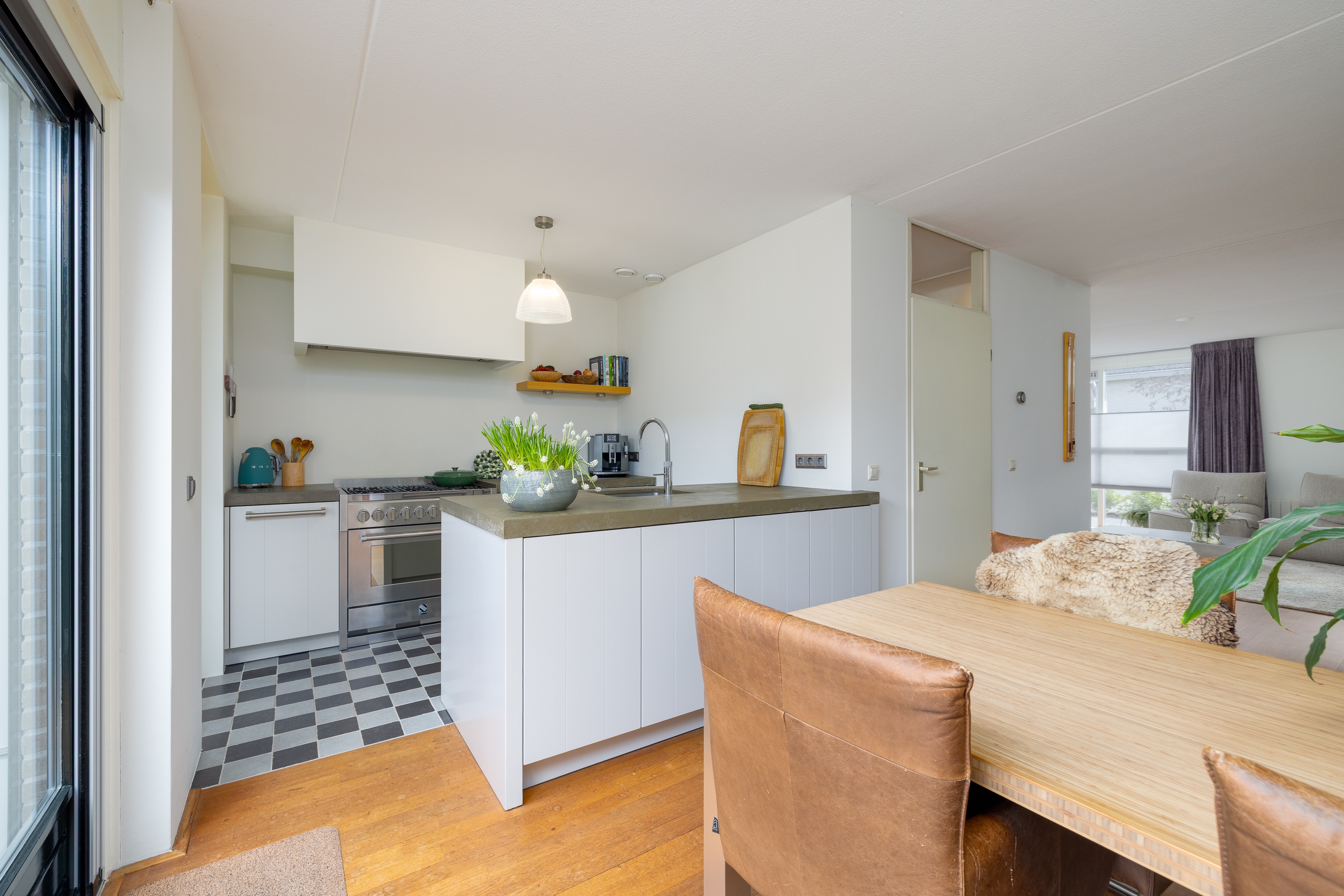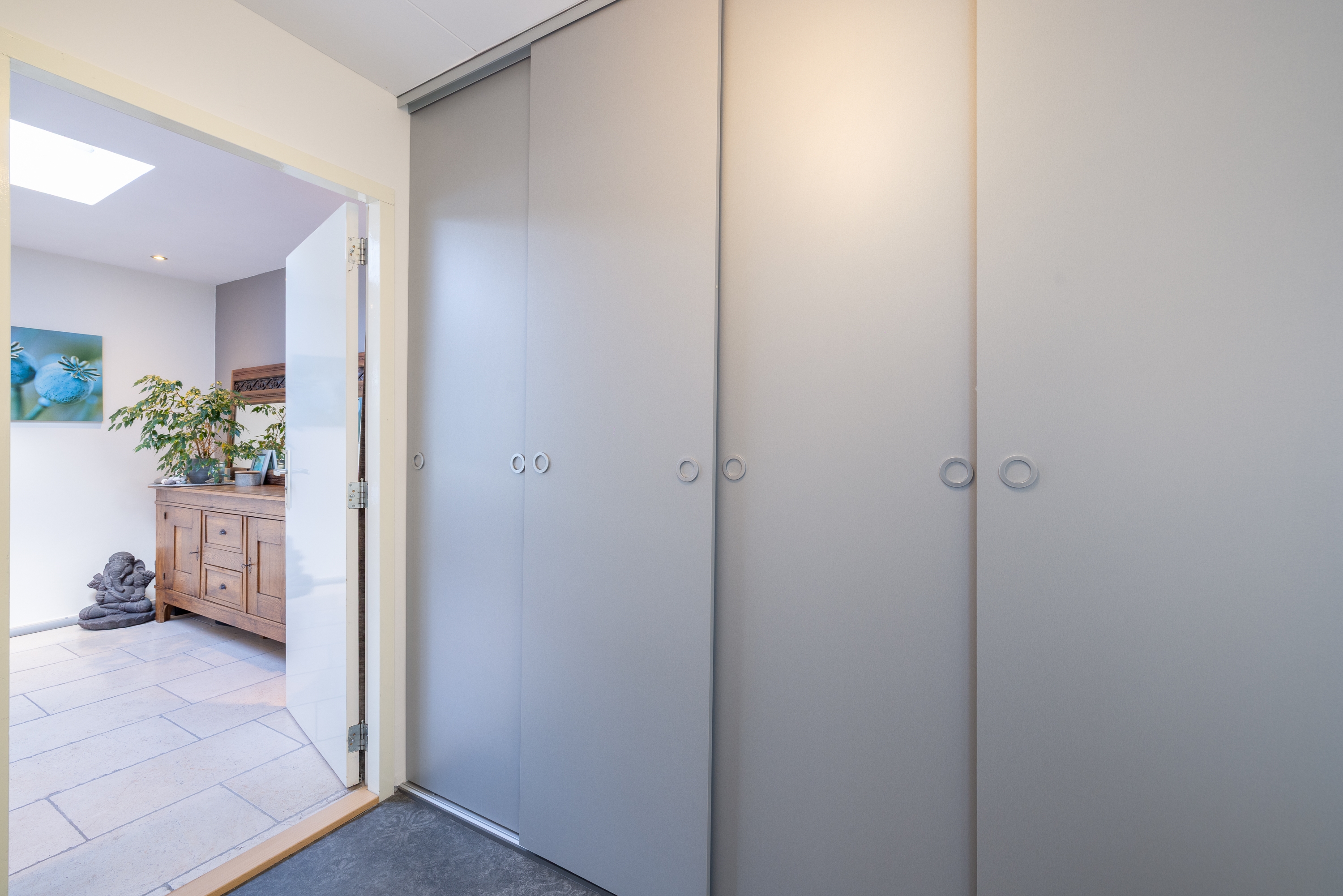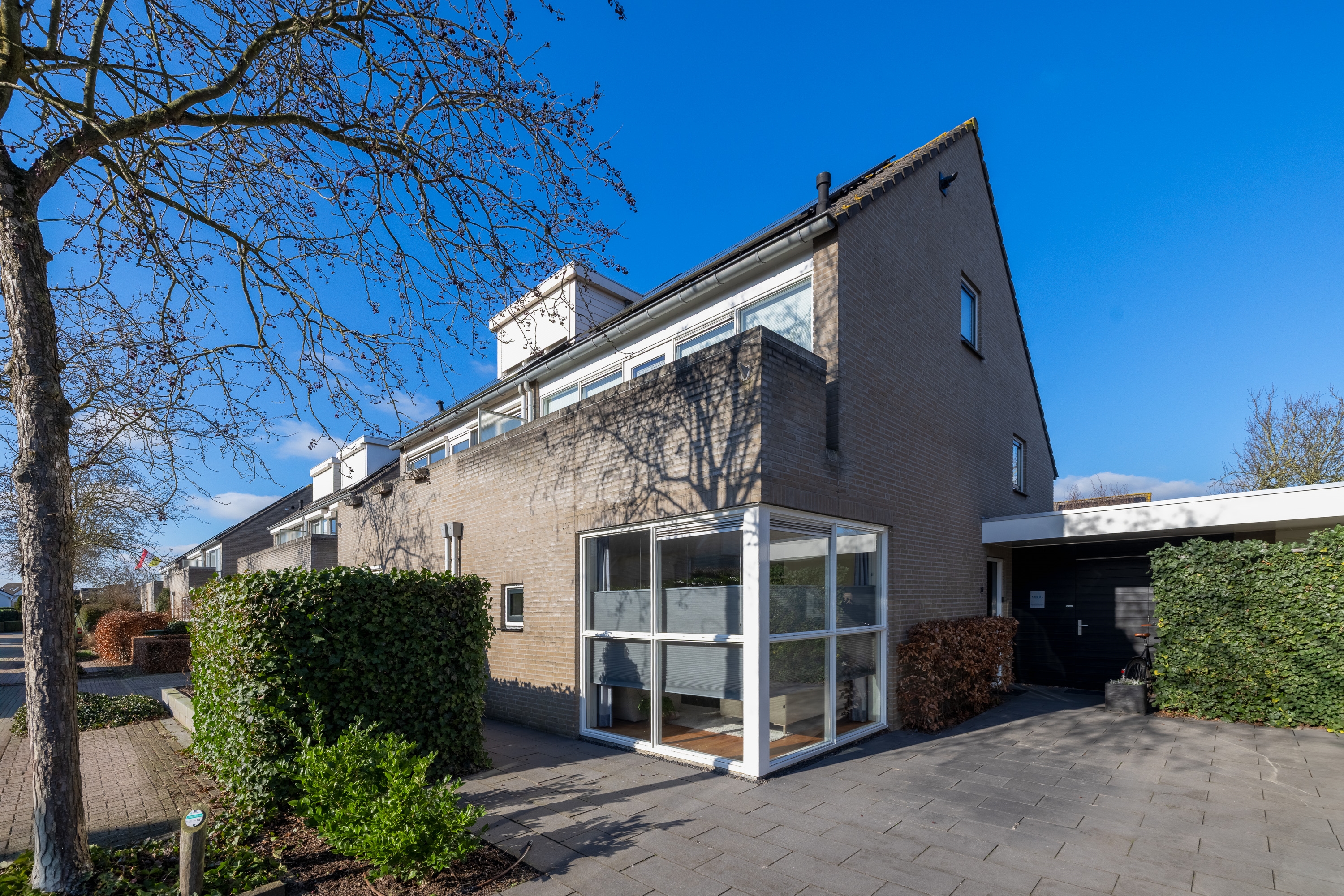 De voordeur bevindt zich aan de eigen oprit met ruime parkeergelegenheid. Een entree die direct duidelijk maakt: hier woon je zelfstandig en comfortabel.