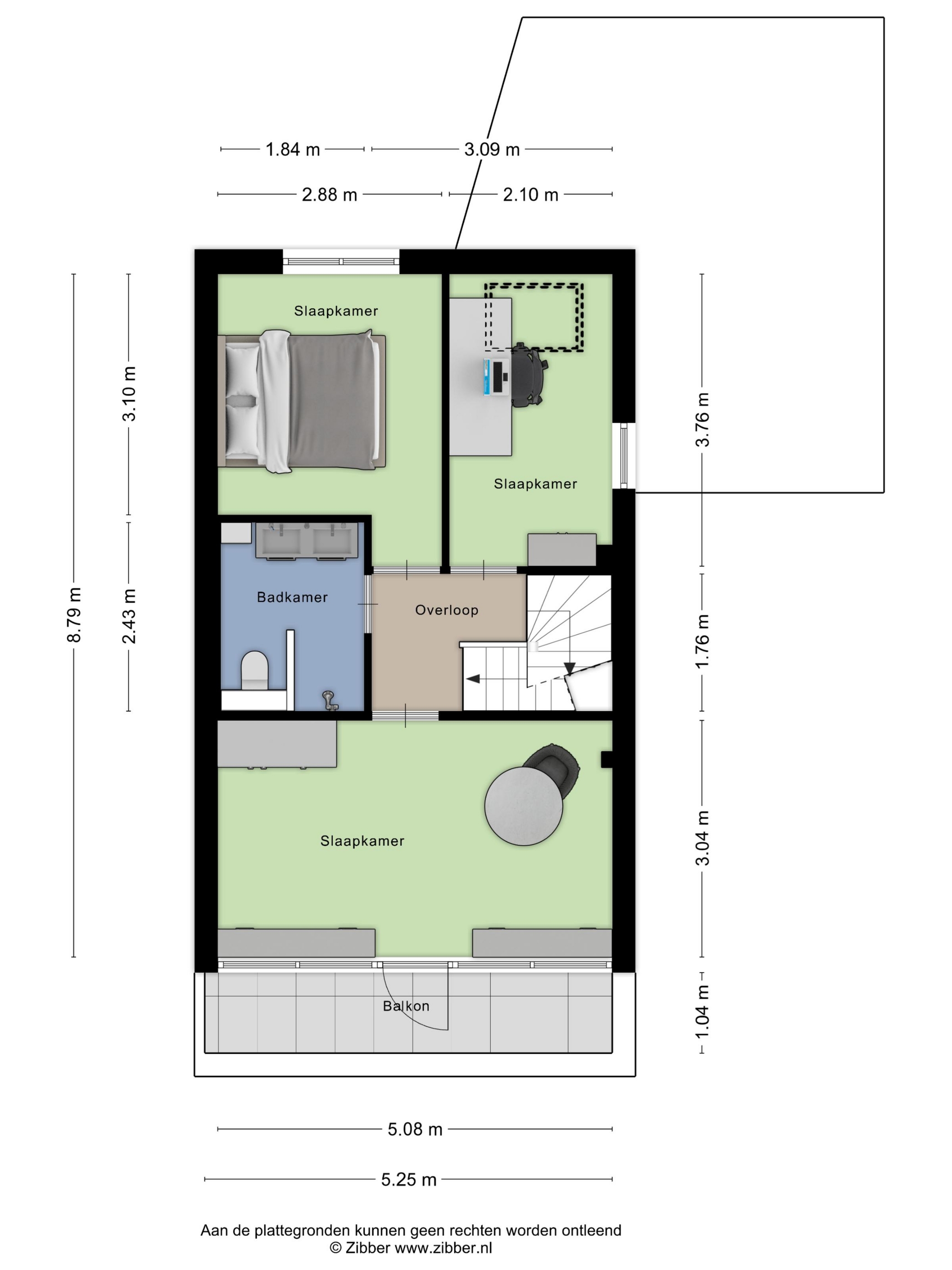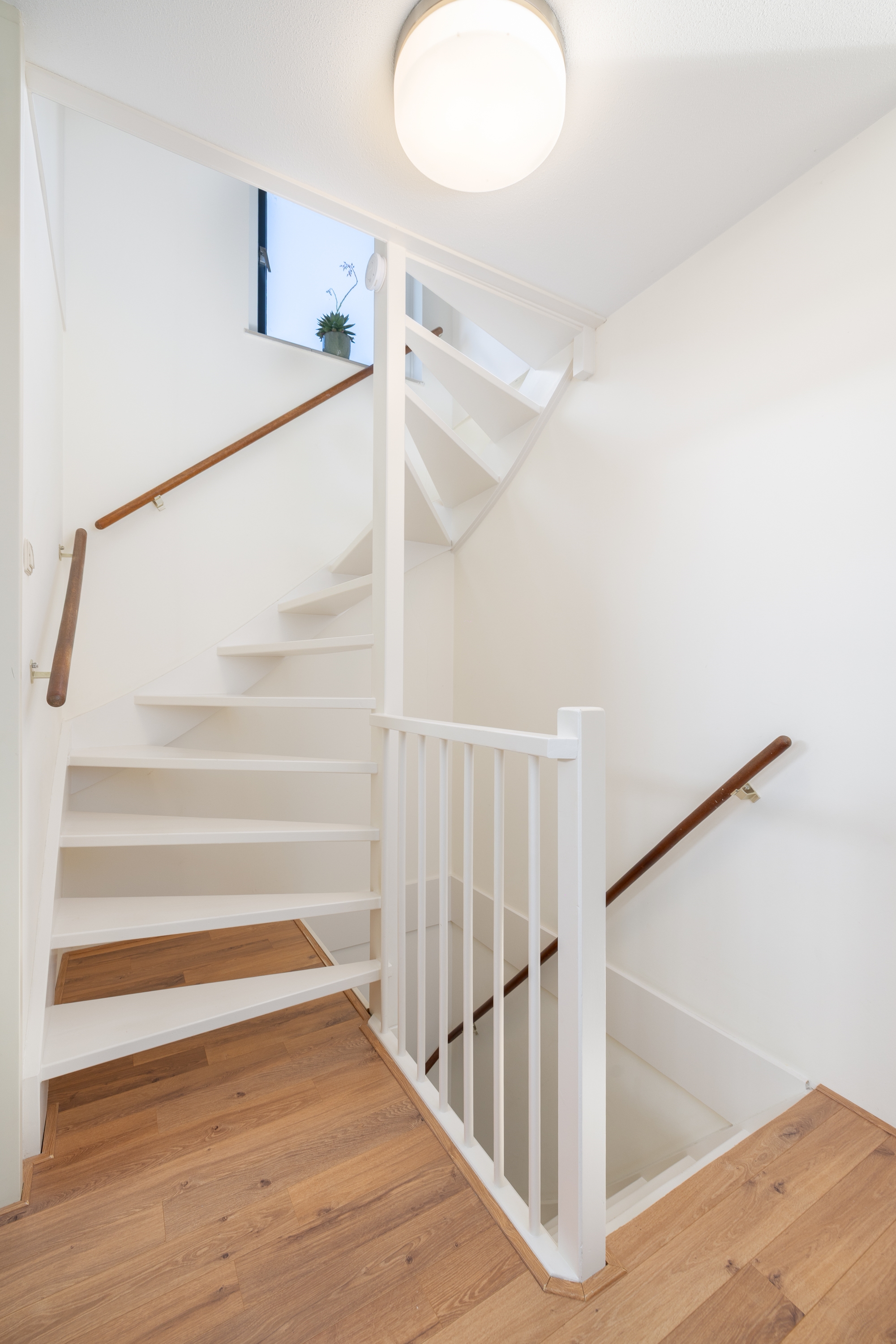 Vanaf de overloop op de eerste verdieping zijn de slaapkamers, de badkamer en de vaste trap naar de zolder bereikbaar. De verdieping voelt licht en ruim, met een praktische en overzichtelijke indeling.