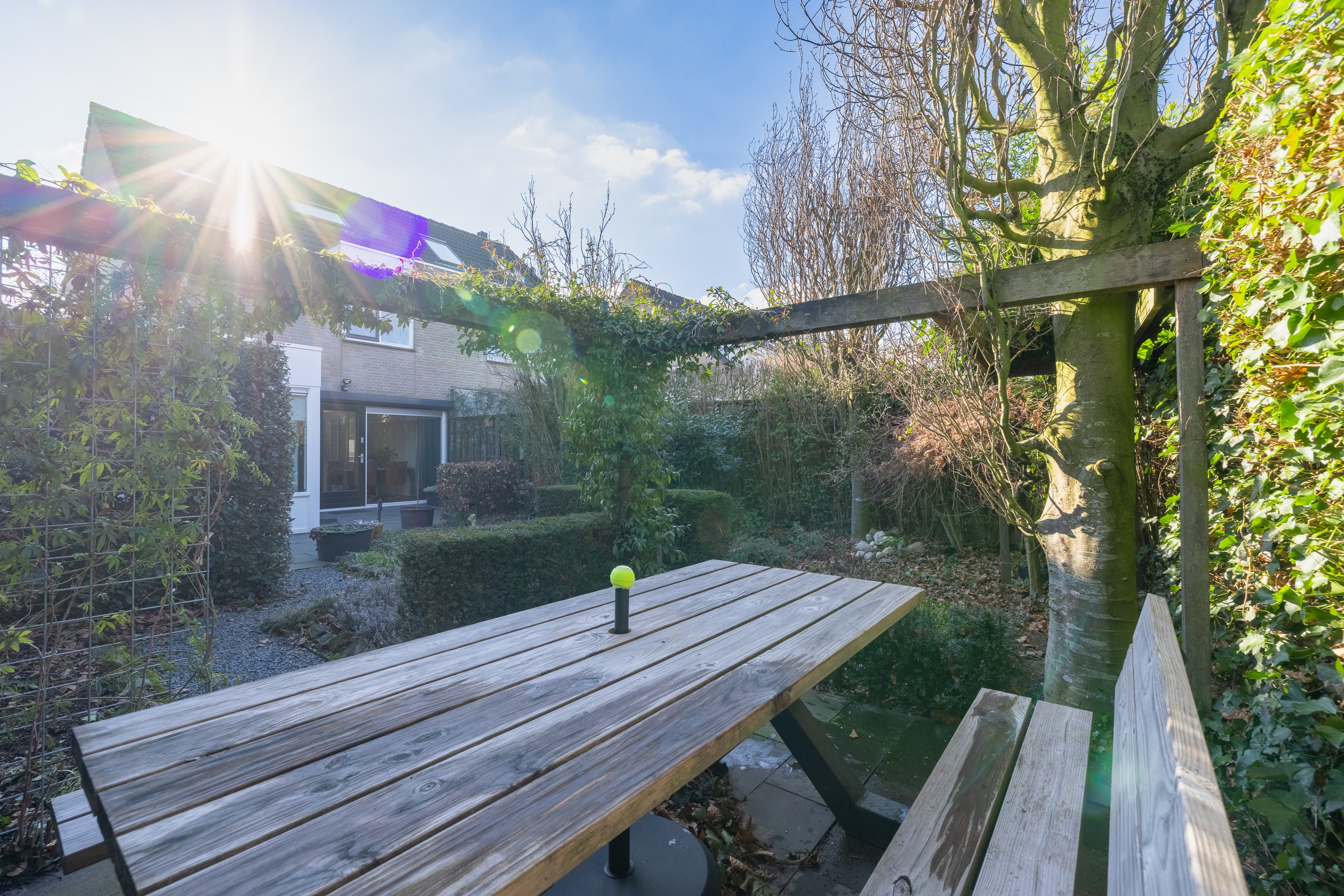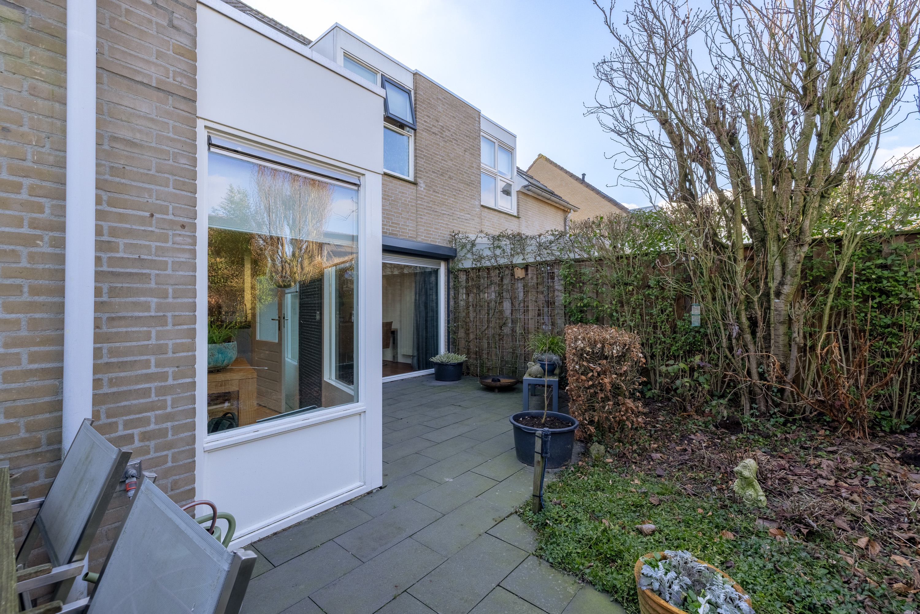 De tuinen zijn onderhoudsarm aangelegd en verzorgd uitgevoerd. De achtertuin is daarbij een absoluut pluspunt. Met een diepte van circa 13 meter en een breedte van 8 meter biedt deze buitenruimte opvallend veel leefruimte.