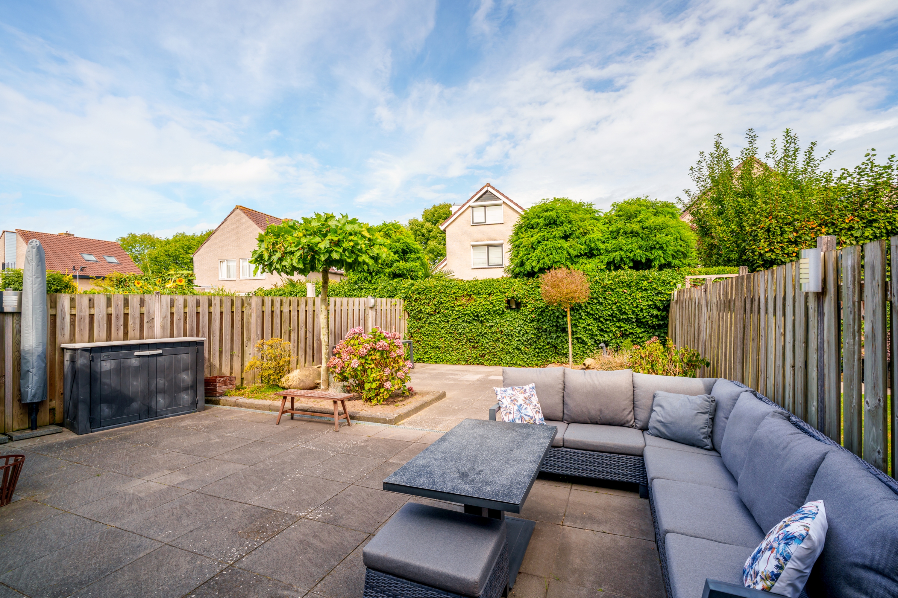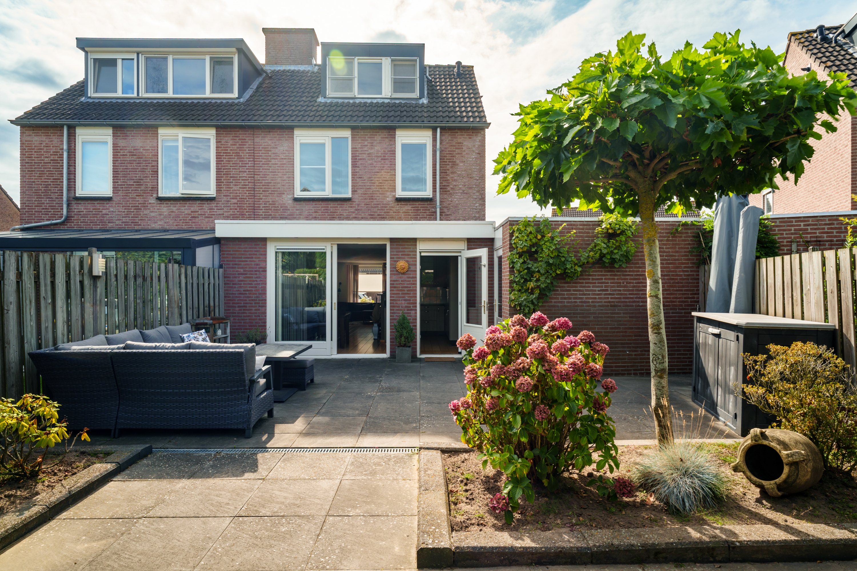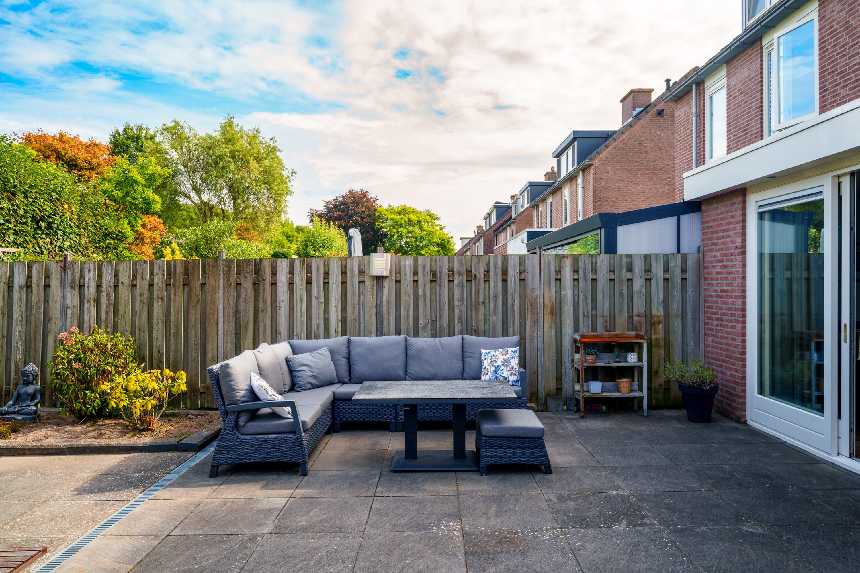Aan de achterzijde van de woning ligt een grote, zonnige tuin van ca. 11 meter diep met veel privacy ideaal om te ontspannen of gezellig te genieten met familie en vrienden. De tuin is geheel onderhoudsvriendelijk aangelegd met tegels en slim geplaatste borders, waardoor je optimaal kunt genieten zonder veel werk.