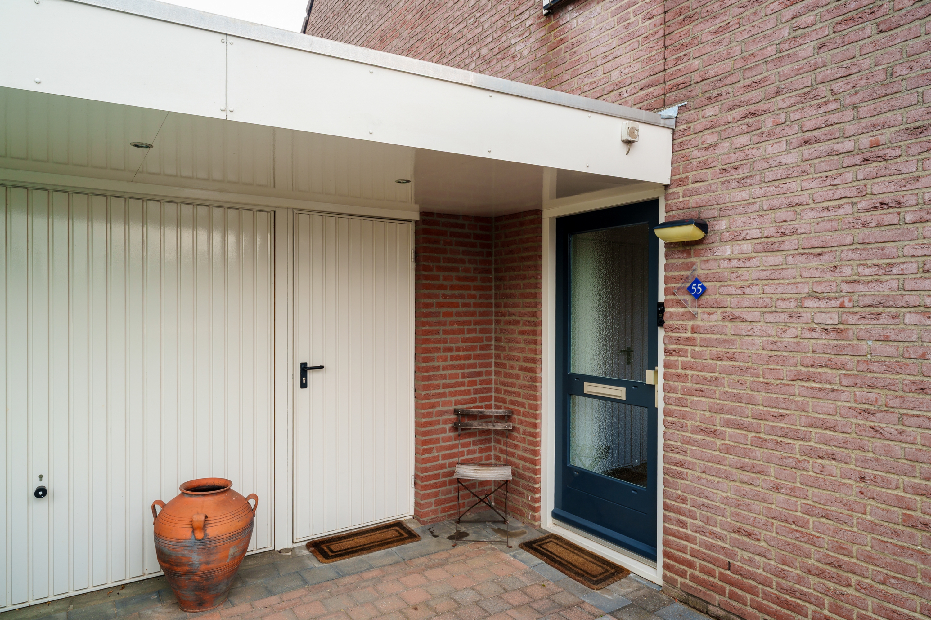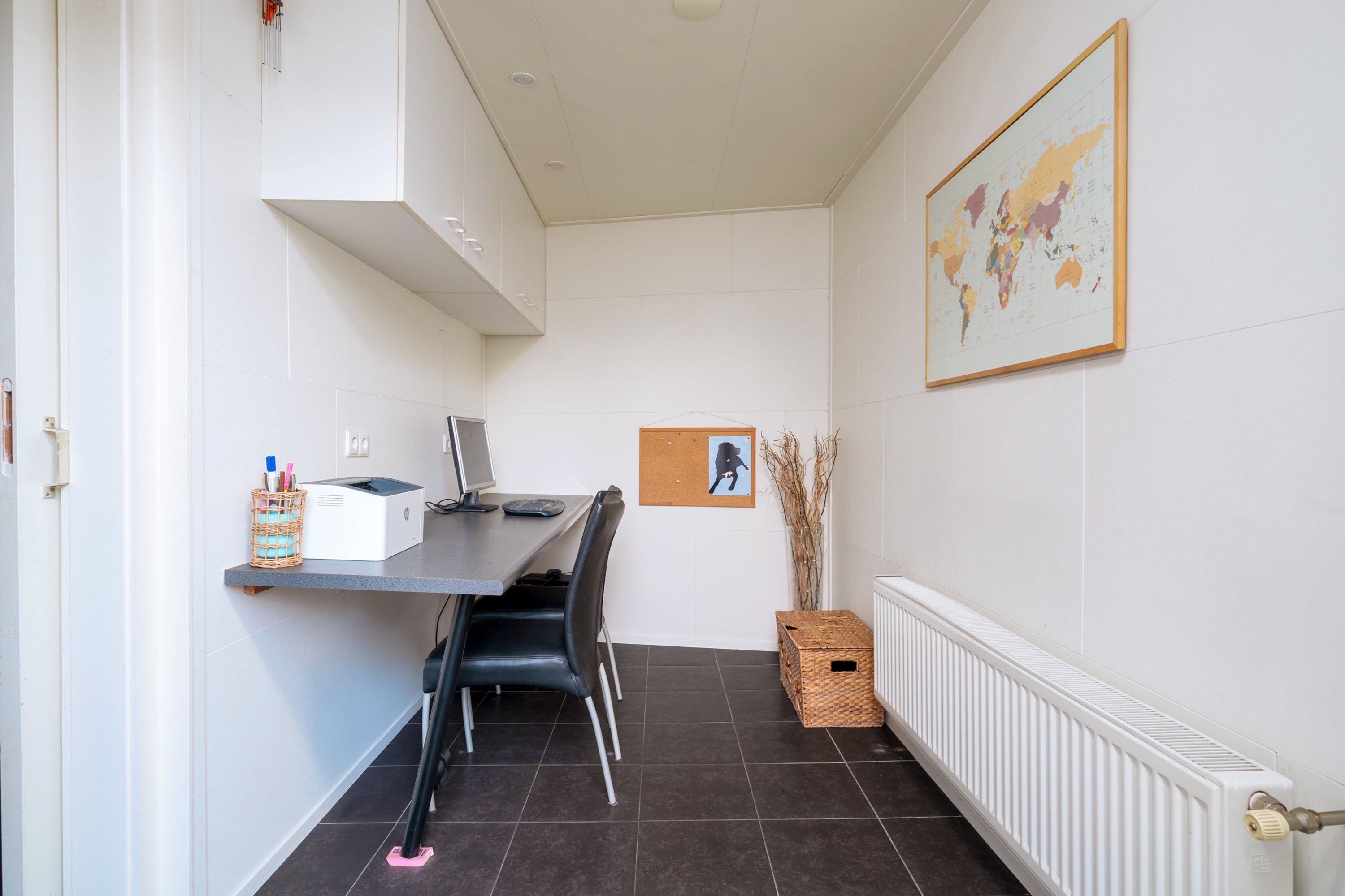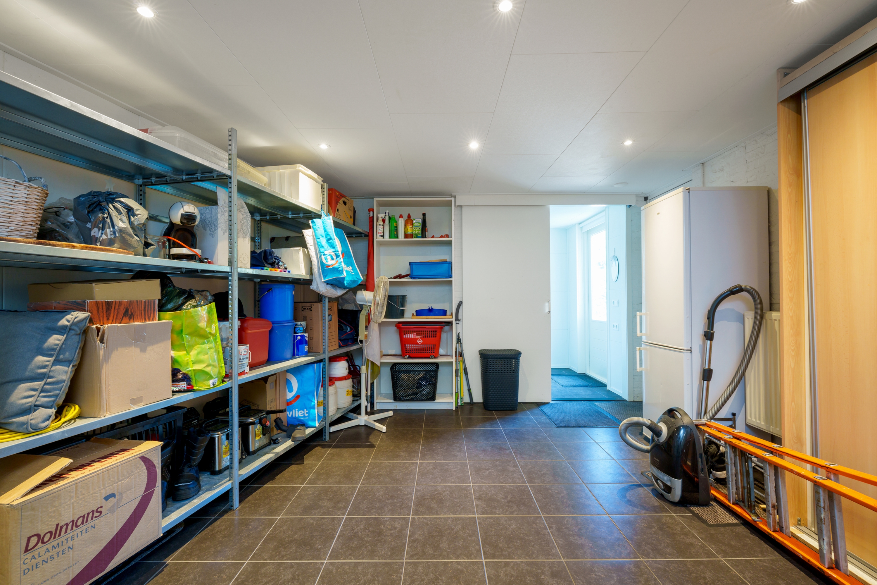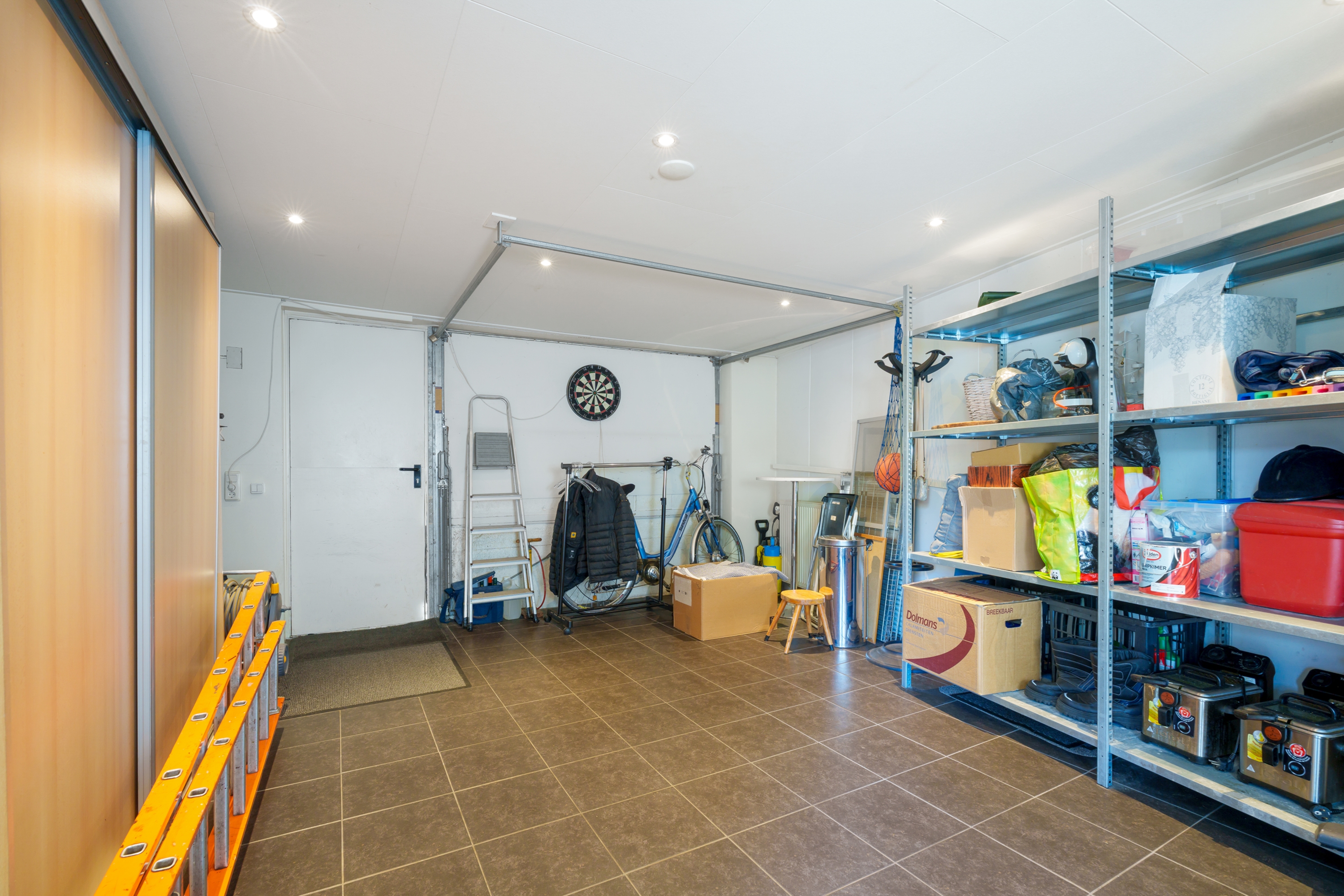 De woning beschikt over een brede garage, die dankzij de situering in deze straat optimaal bereikbaar is. Voor de garage ligt een ruime dubbele oprit met plek voor meerdere auto’s, waardoor parkeren geen enkel probleem is. Achter de garage bevindt zich bovendien een kantoorruimte, perfect voor thuiswerken of als hobbyruimte.
