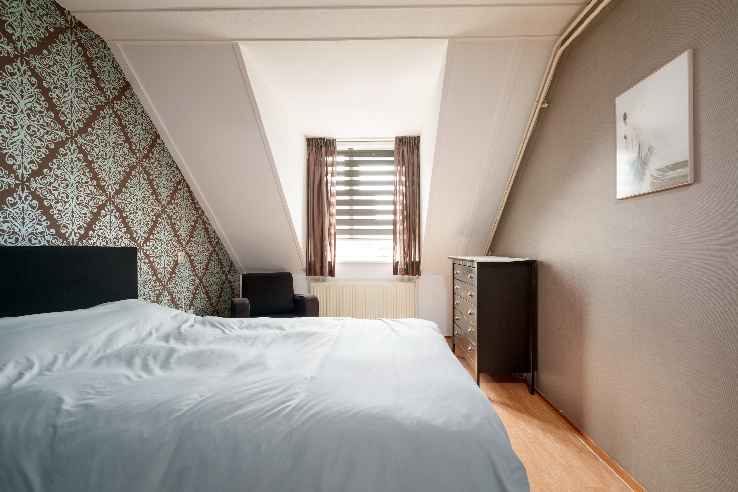 De zolderverdieping is bereikbaar via een vaste trap en biedt verrassend veel ruimte. De ruime overloop beschikt over de witgoedaansluitingen en de cv-ketelopstelling. Dankzij de dakkapel over de volle breedte is er niet alleen veel licht, maar ook extra leefruimte ontstaan. Hierdoor is er een volwaardige slaapkamer gecreëerd, wat deze verdieping een waardevolle aanvulling maakt op het woonprogramma.