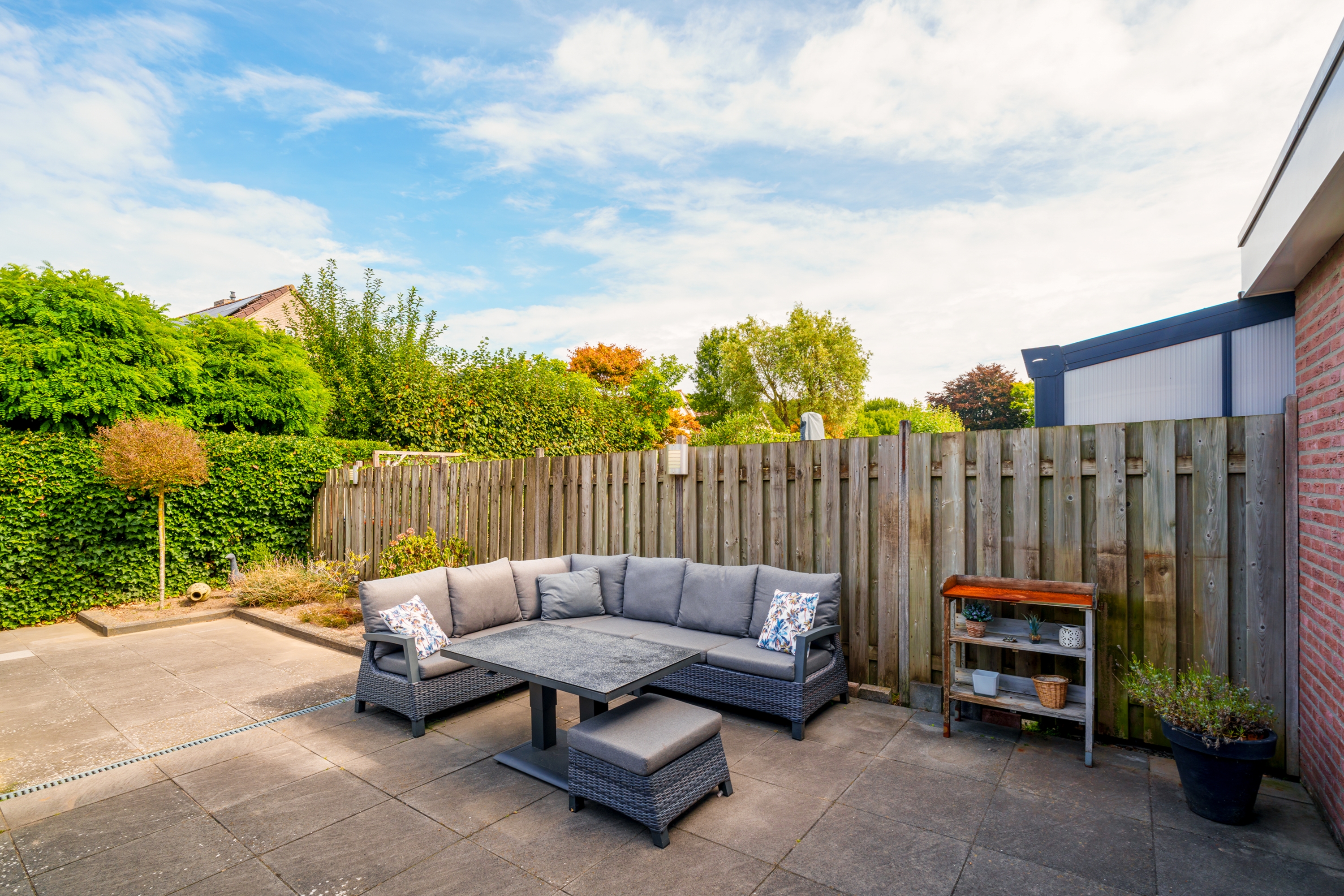 -Grote, zonnige tuin van ca. 11 meter diep, onderhoudsvriendelijk aangelegd met tegels en borders