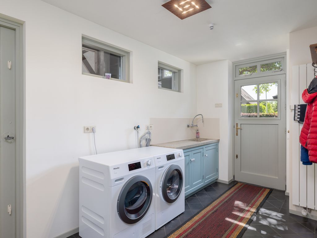 Via en suite schuifdeuren betreedt u de royale woonkeuken in U-vorm, volledig ingericht voor de fijnproever. De naastgelegen provisiekelder biedt een gekoelde bewaarplaats voor uitgelezen wijnen. In de bijkeuken is plaats voor was- en huishoudapparatuur; praktisch én discreet.