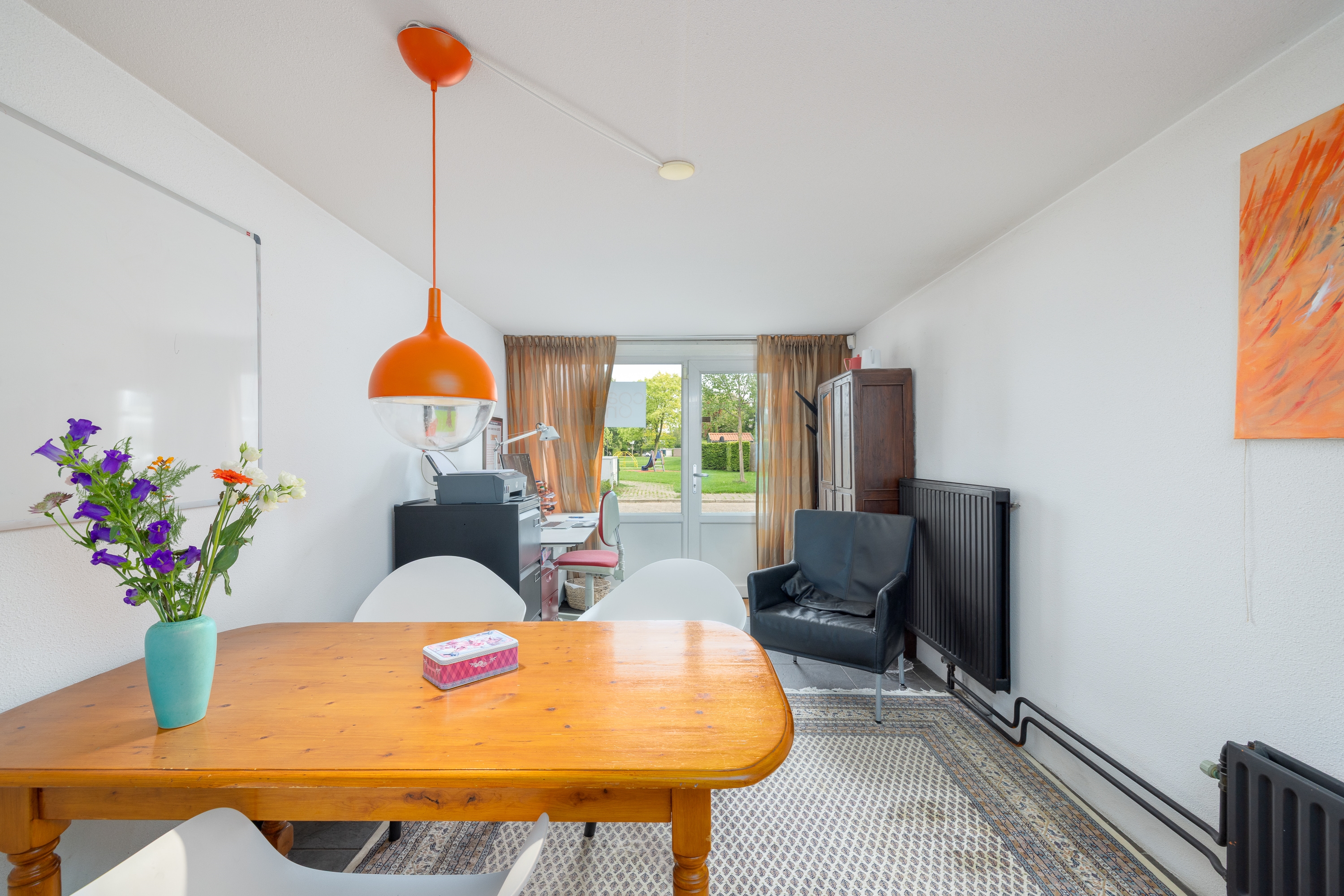 De garage is tot kantoor omgebouwd.