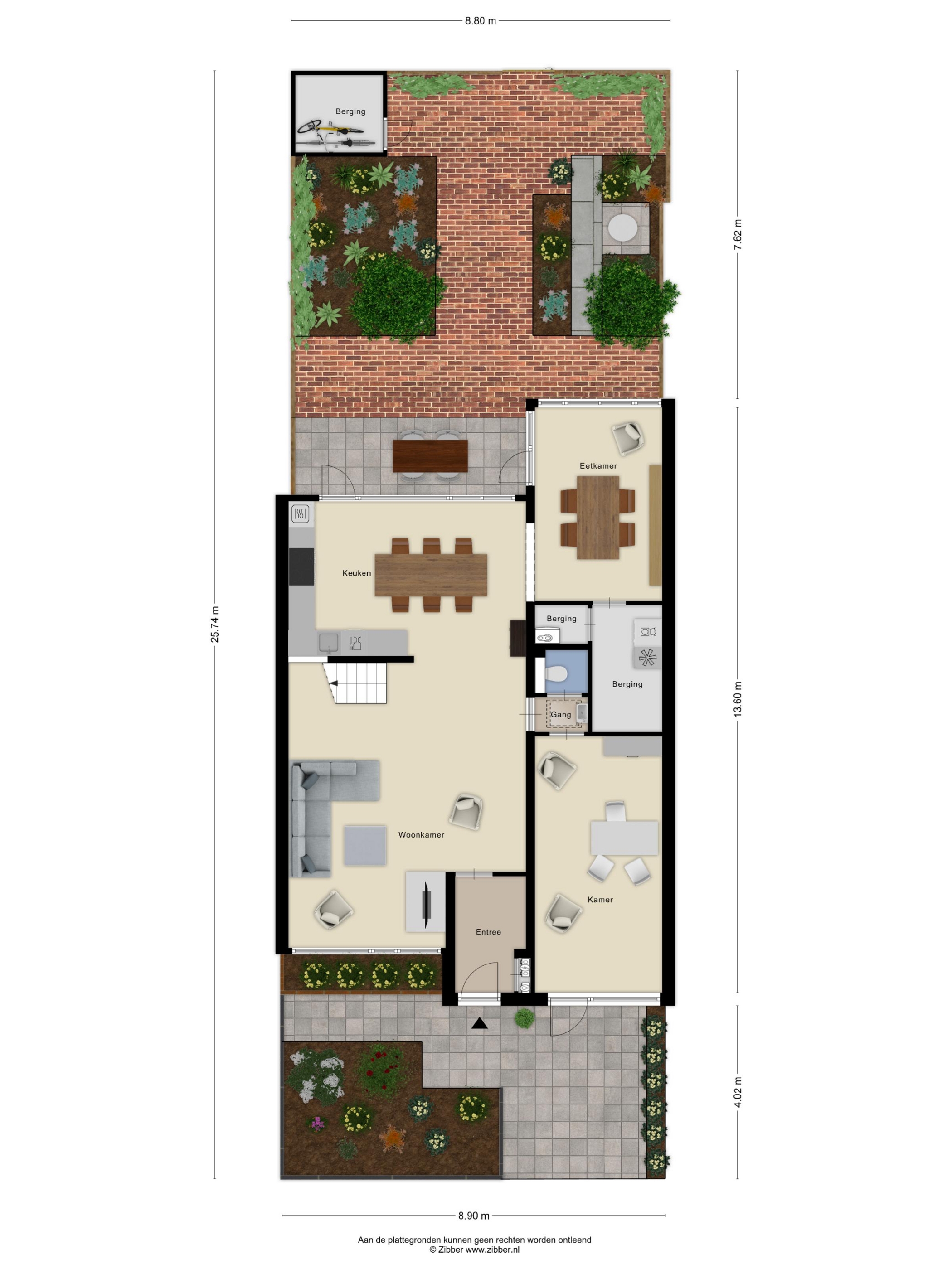 • Diepe achtertuin op het zuidwesten