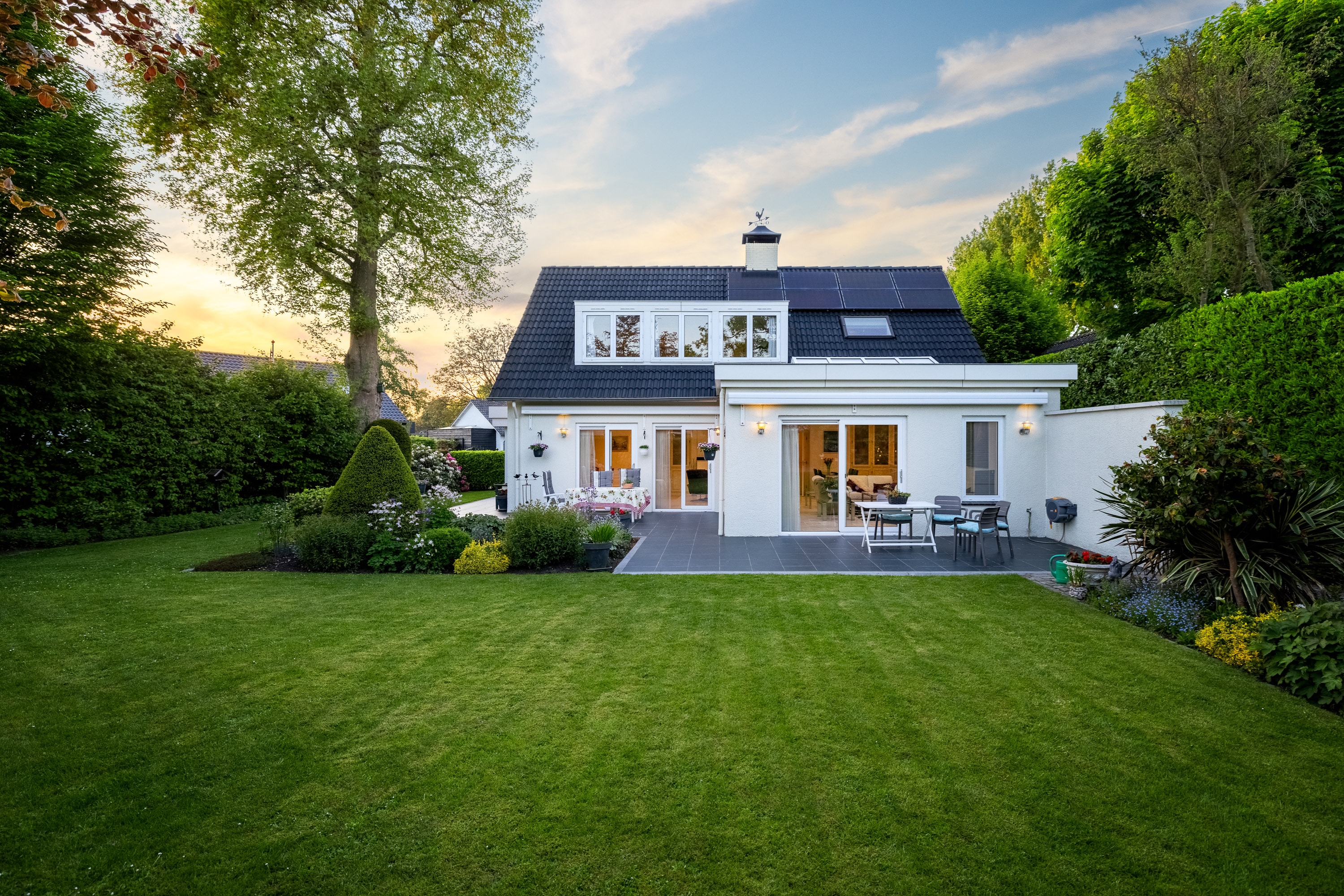 De tuin is het kloppend hart van deze woning – een parkachtige omgeving die uitnodigt tot rust en contemplatie. Volledig omheind, toegankelijk via sierlijke poorten en met volwassen bomen, struiken en weelderige borders, biedt de tuin een oase van groen en stilte. Sierlijke bestrating met kinderkoppen en intieme zithoeken creëren een sfeer van tijdloze schoonheid, terwijl de open zichtlijnen rondom de woning een gevoel van vrijheid en ruimte bieden. Hier kunt u de hele dag door genieten van zon of schaduw, omringd door de rustgevende geluiden van de natuur.