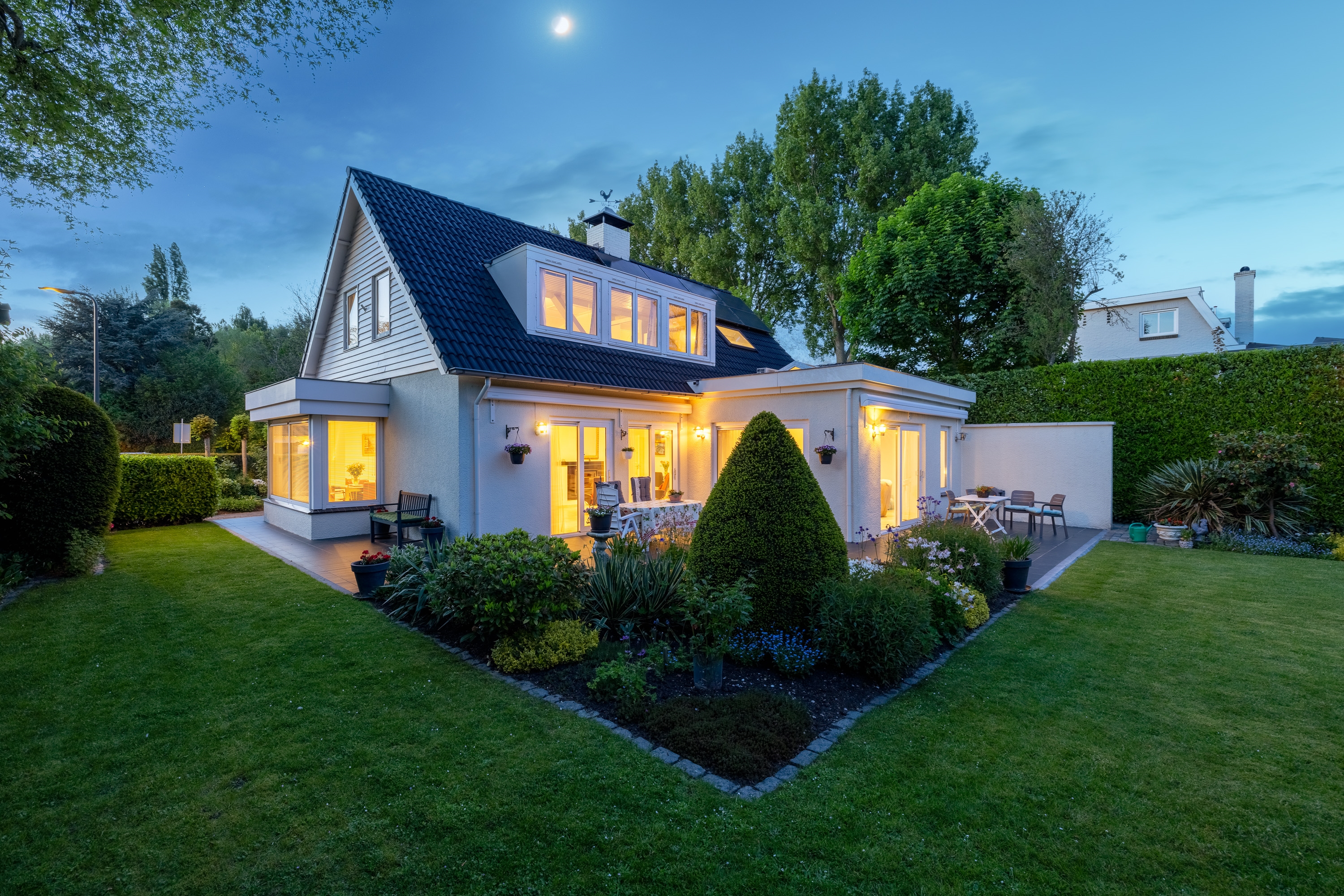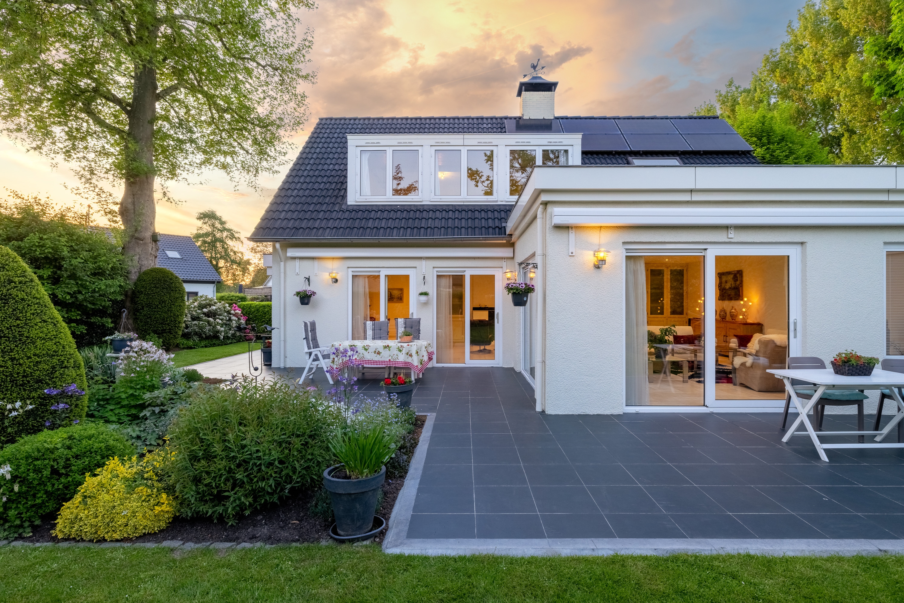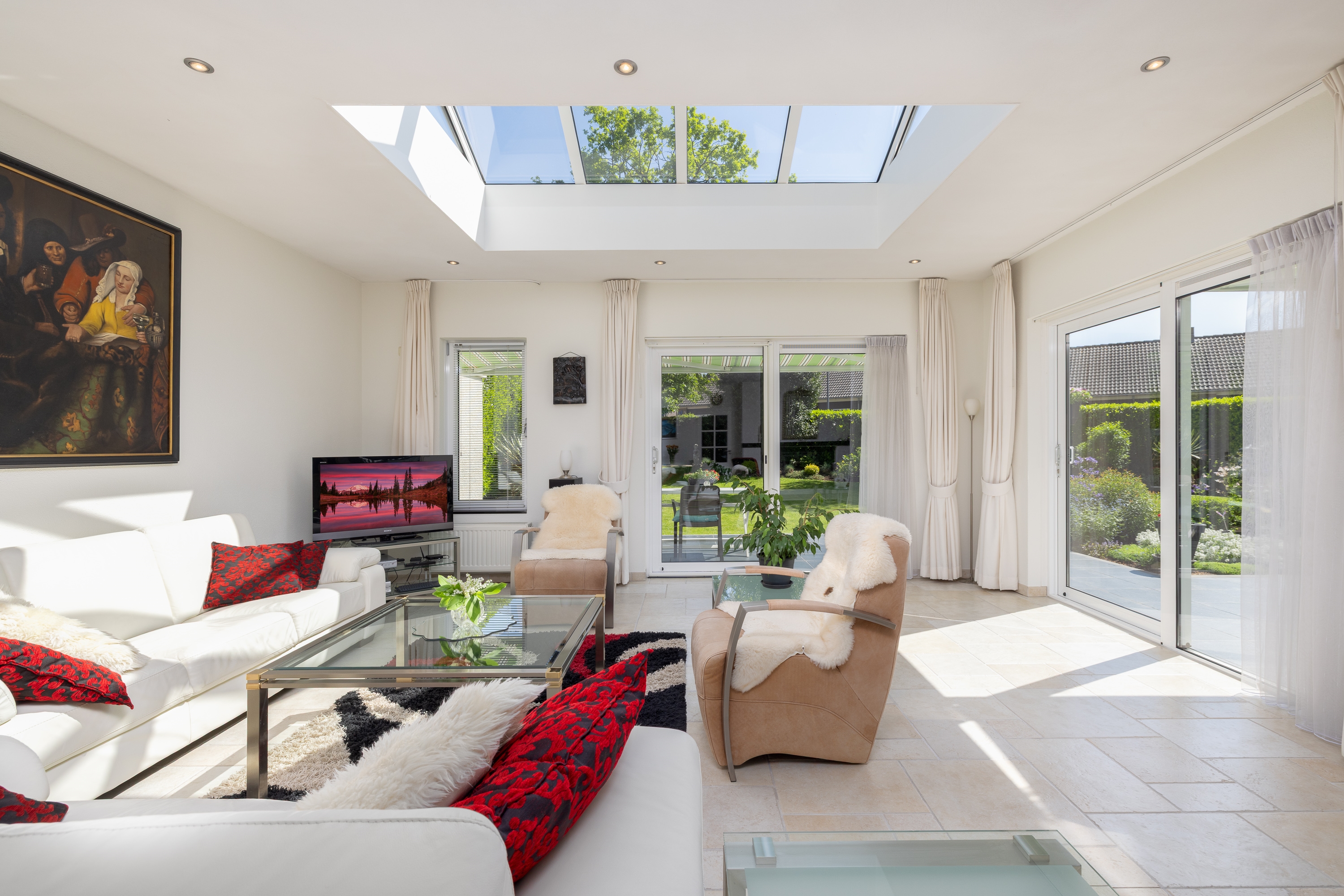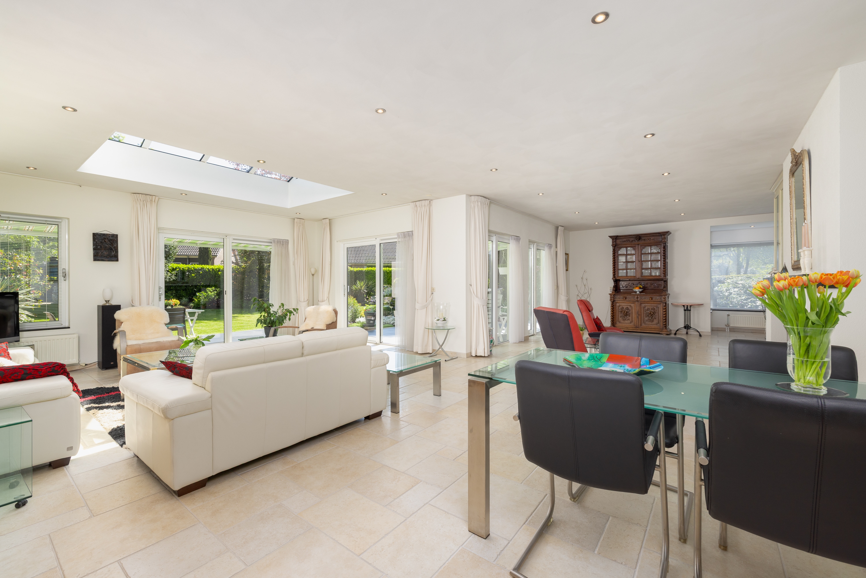 De woning biedt royale leefruimtes, veel daglicht en een natuurlijke verbinding tussen binnen en buiten. Grote raampartijen, schuifpuien en open zichtlijnen versterken het gevoel van vrijheid.