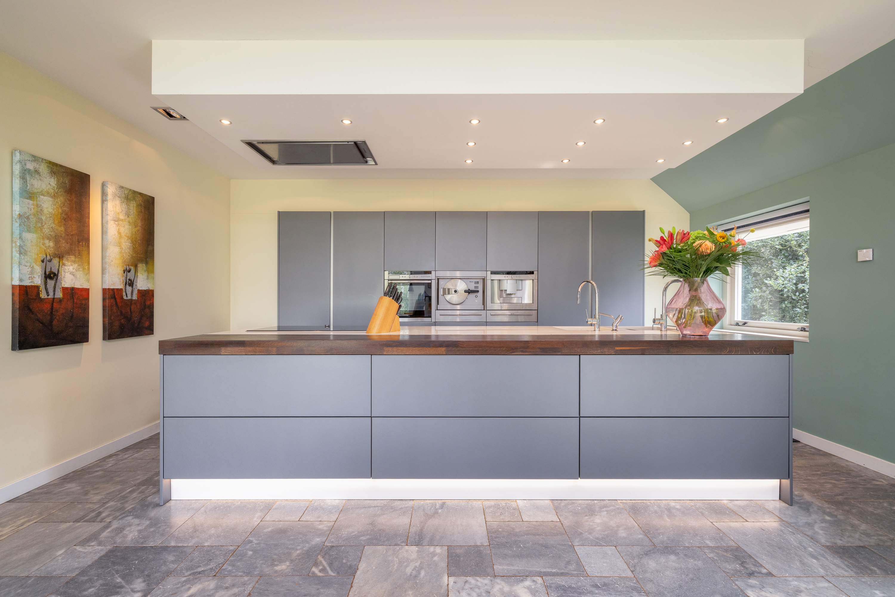 De woonkeuken is een ware eyecatcher: voorzien van maatwerk kasten, een royaal kookeiland en hoogwaardige inbouwapparatuur. Een plek waar koken, tafelen en samenzijn moeiteloos samenkomen in het kloppend hart van de woning.