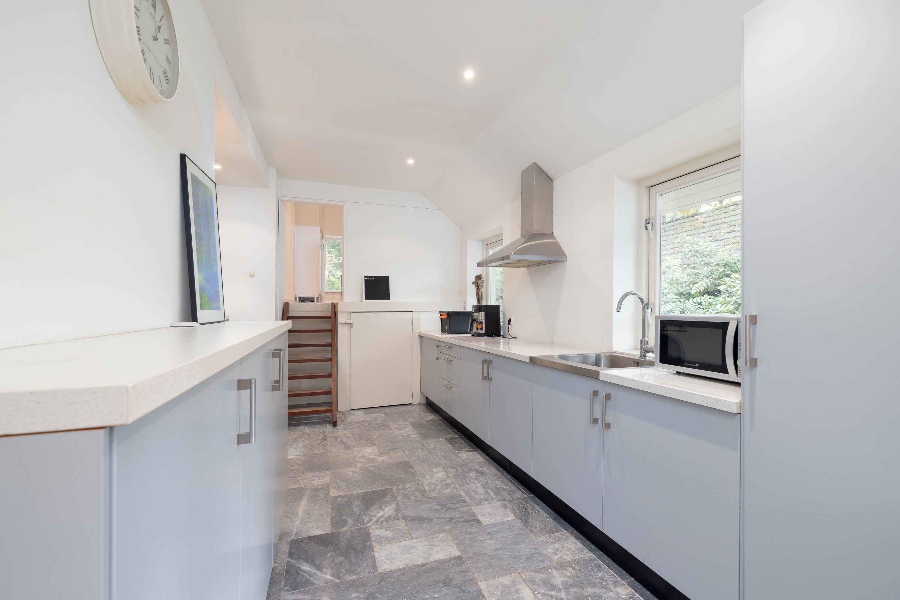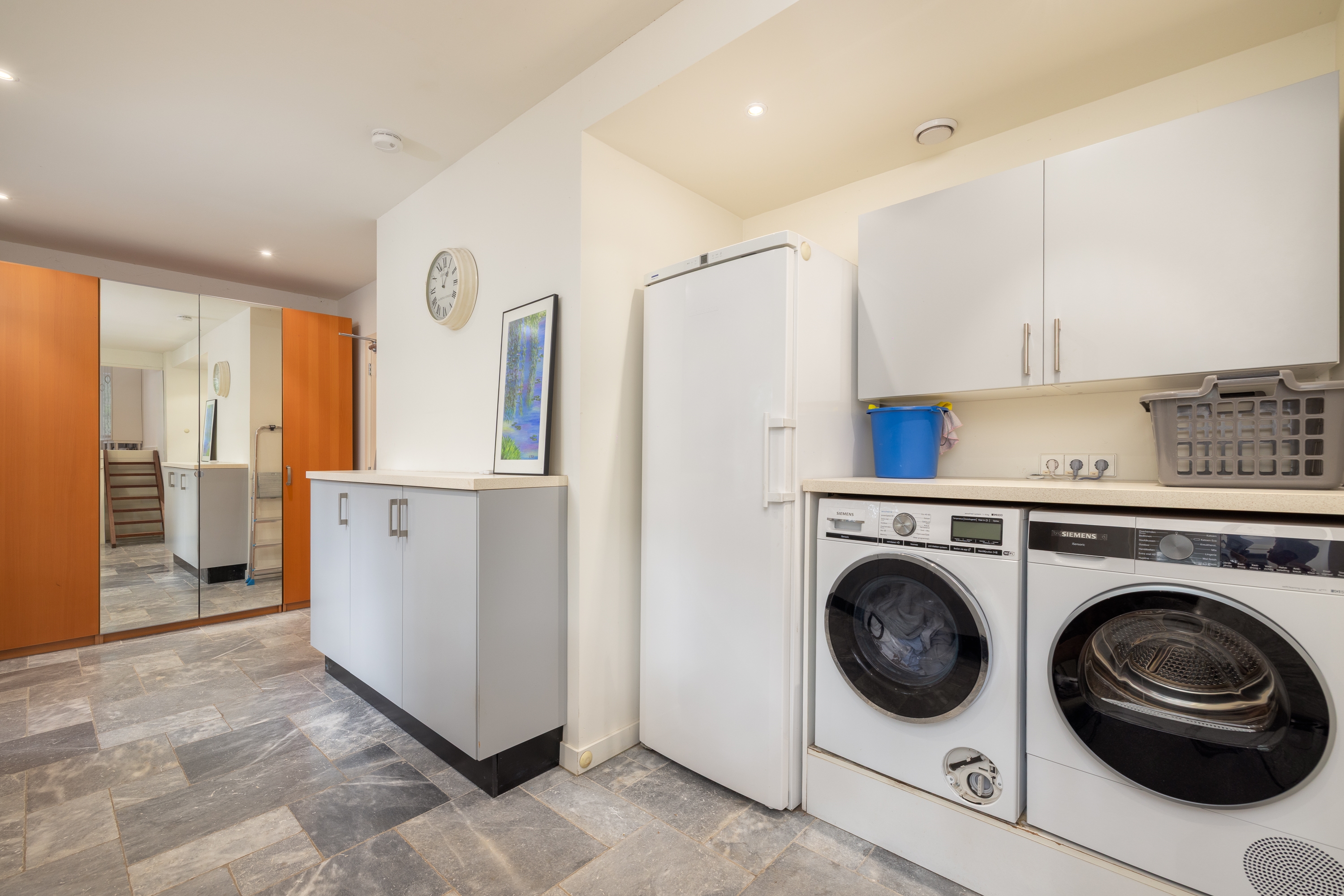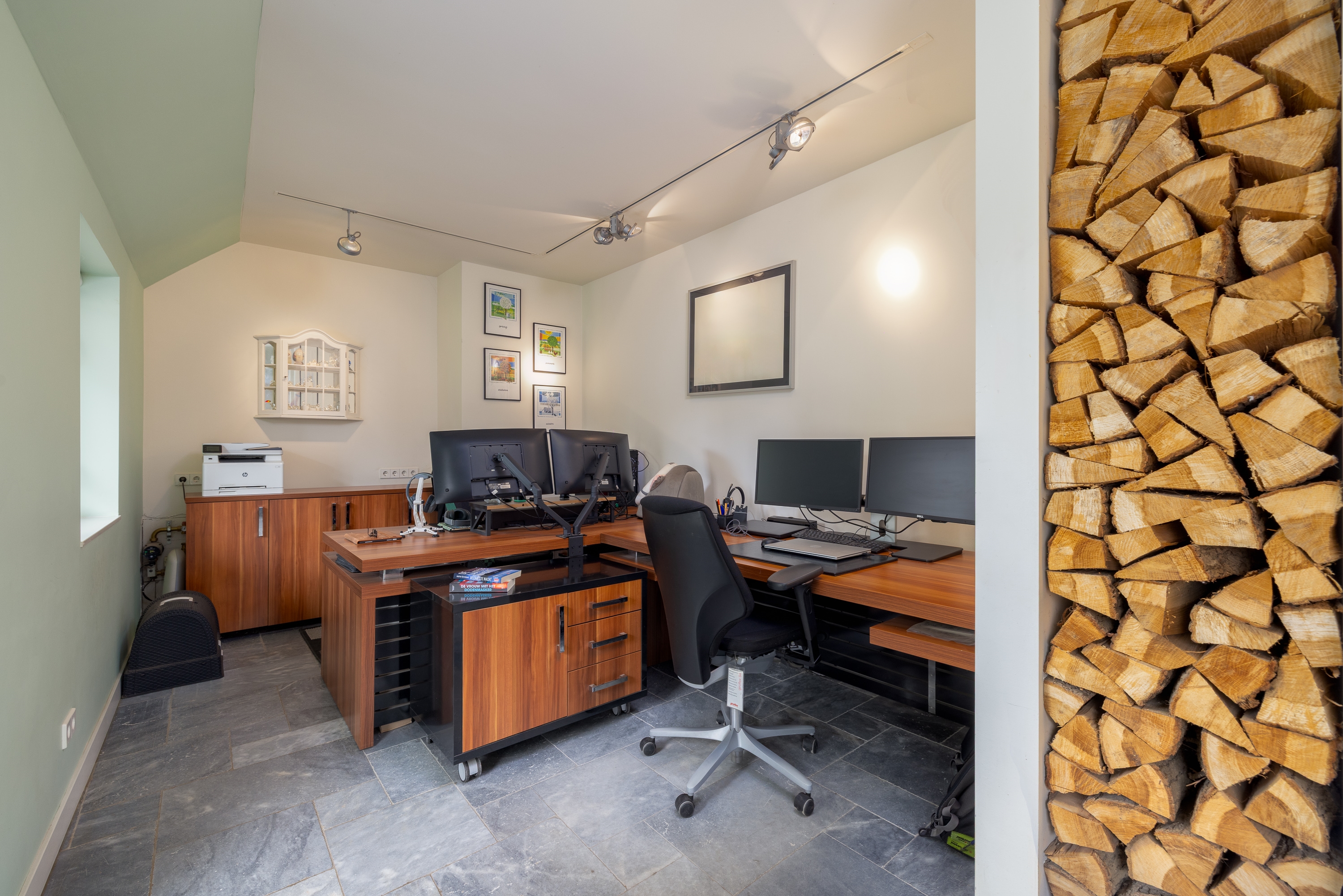 Daarnaast vindt u op de begane grond een sfeervolle werkkamer/kantoorruimte, ideaal voor thuiswerken of het ontvangen van cliënten, een praktische bijkeuken, een luxe badkamer en een ruime slaapkamer, perfect voor een levensloopbestendige indeling of als comfortabel gastenverblijf.