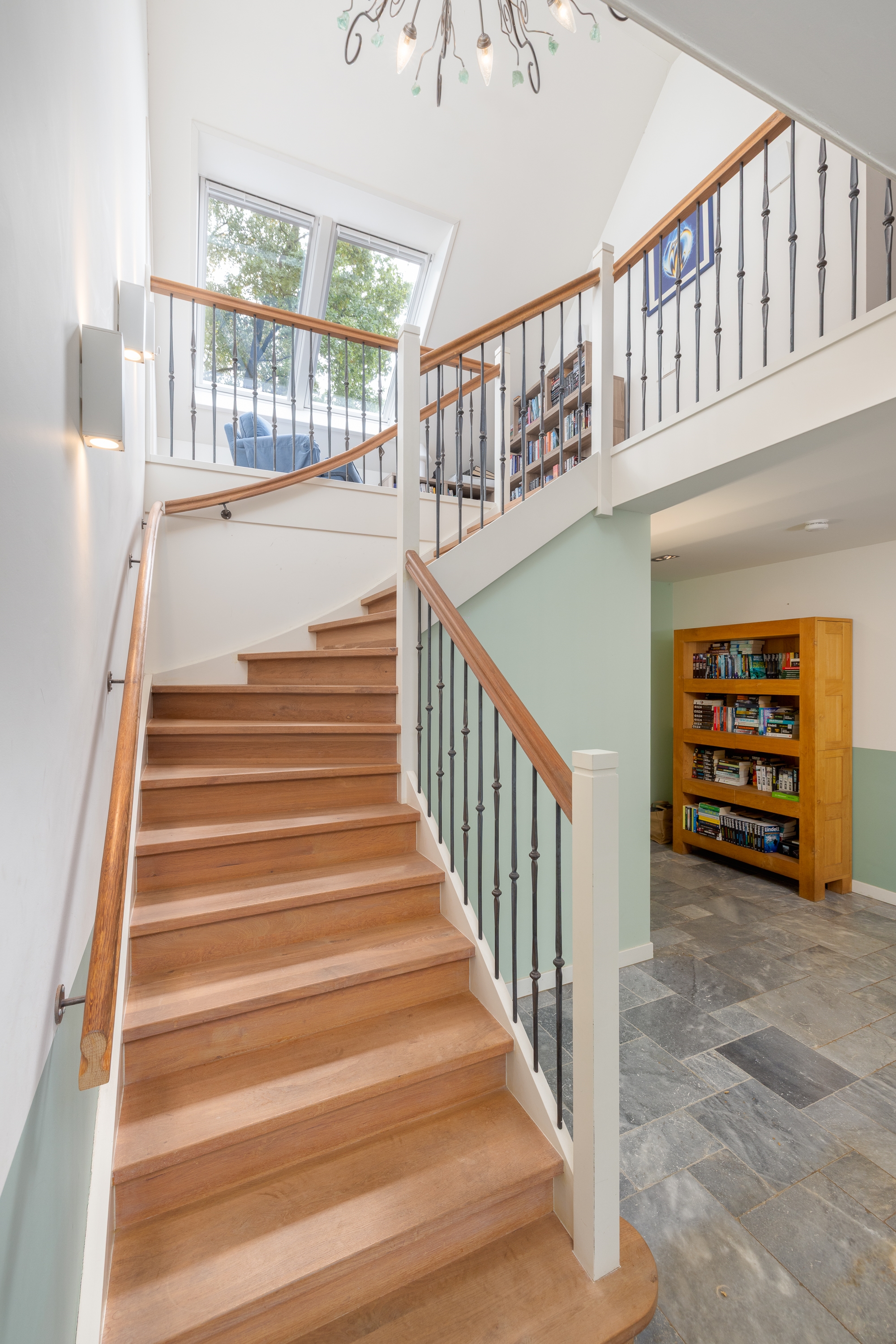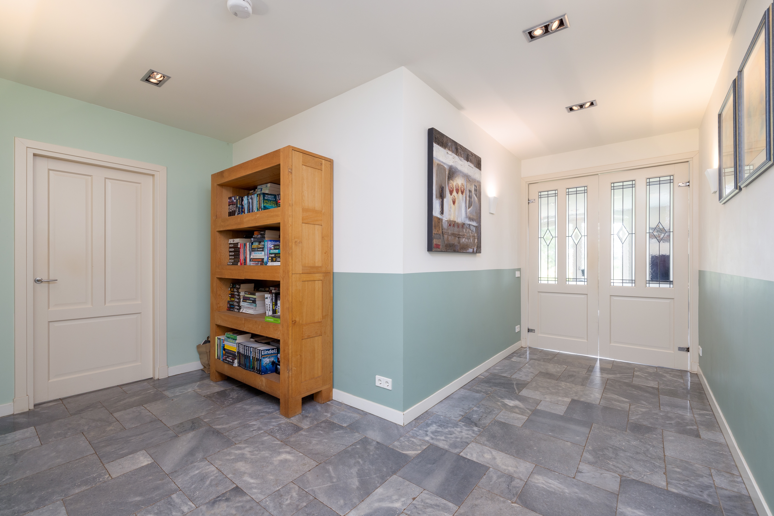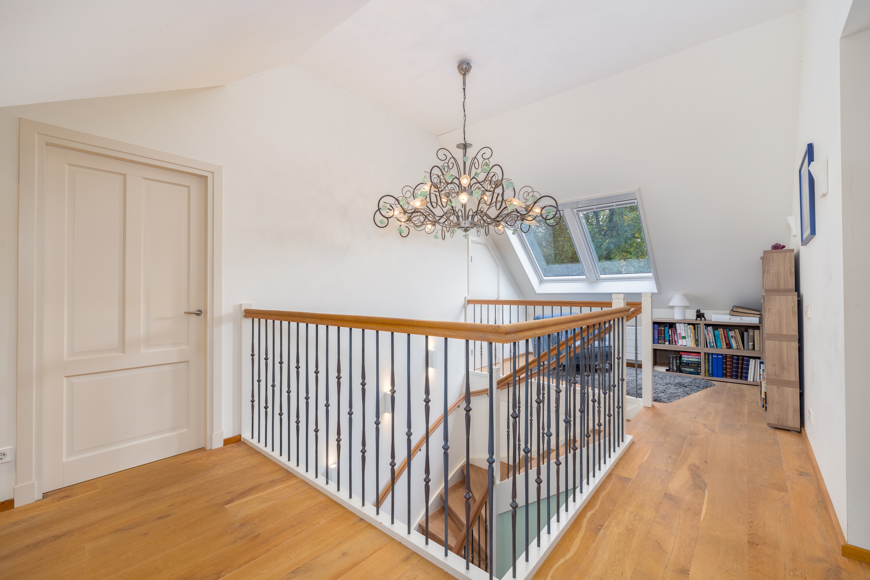 Bij binnenkomst wordt u verwelkomd in een royale entreehal met een open trapopgang. De ruimte baadt in het licht en zet direct de toon voor de rest van de woning: stijlvol, warm en verfijnd.