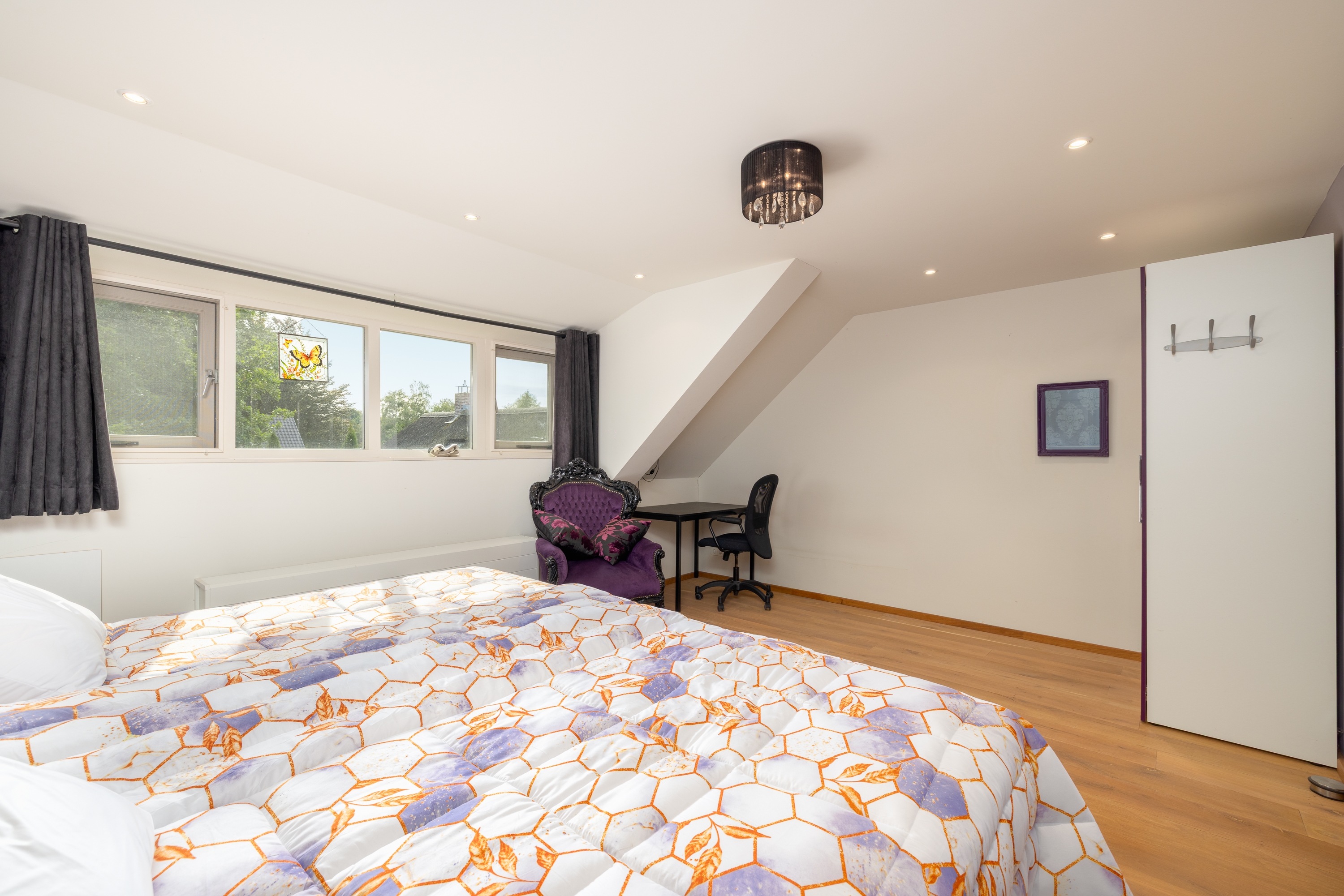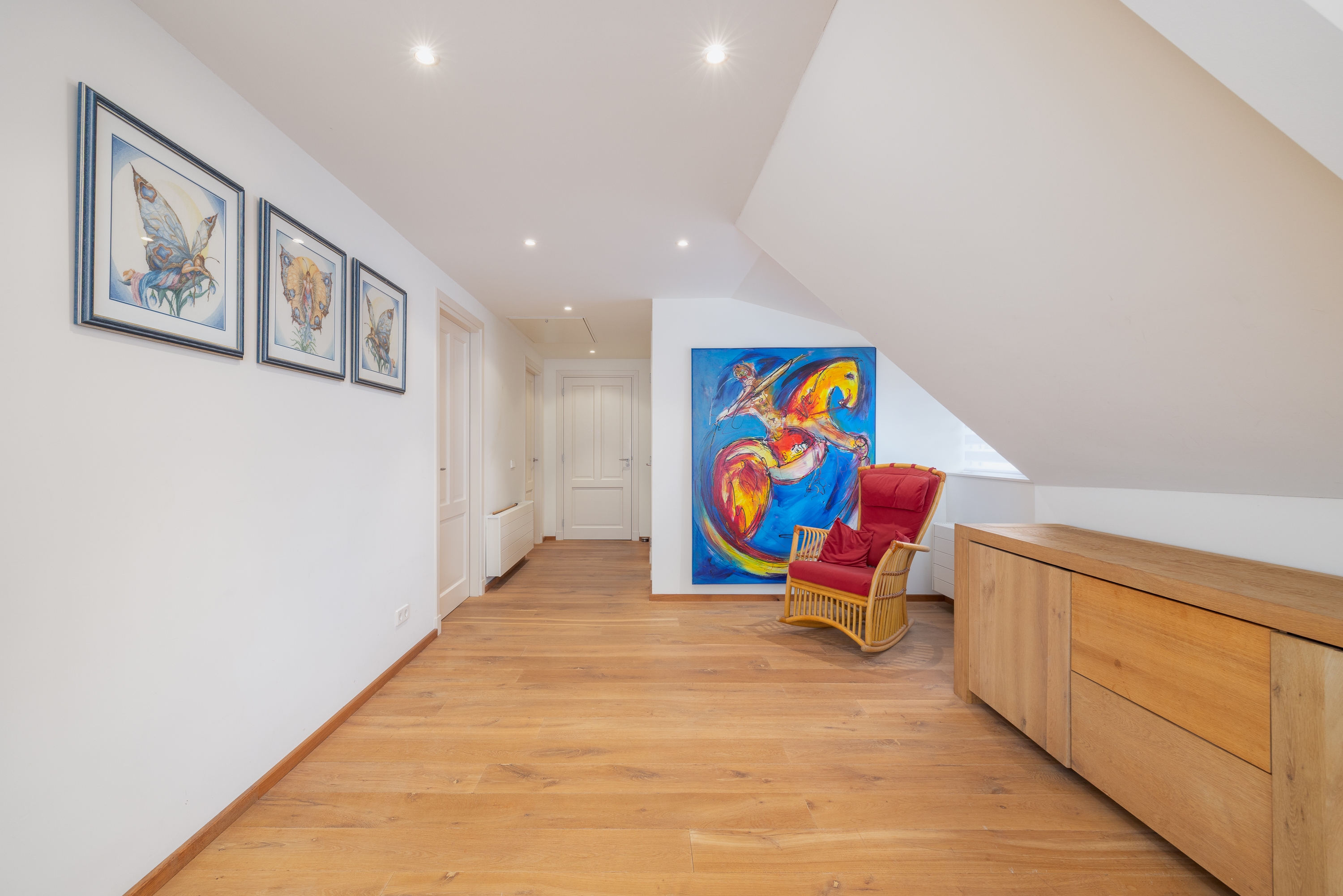 De stijlvolle trap leidt naar een royale overloop met een vide met heerlijke lichtinval die de verdieping een open en ruimtelijk karakter geeft. Hier bevinden zich vier volwaardige master bedrooms, elk met een eigen karakter, sfeervolle raampartijen en een gevoel van rust en ruimte. De kamers zijn stuk voor stuk ruim bemeten en bieden plaats voor een zitgedeelte of inloopkast. De luxe badkamer is uitgevoerd met hoogwaardige materialen en biedt een spa-achtige beleving met een vrijstaand ligbad, inloopdouche, dubbele natuurstenen wastafel en vloerverwarming een oase van comfort en ontspanning.