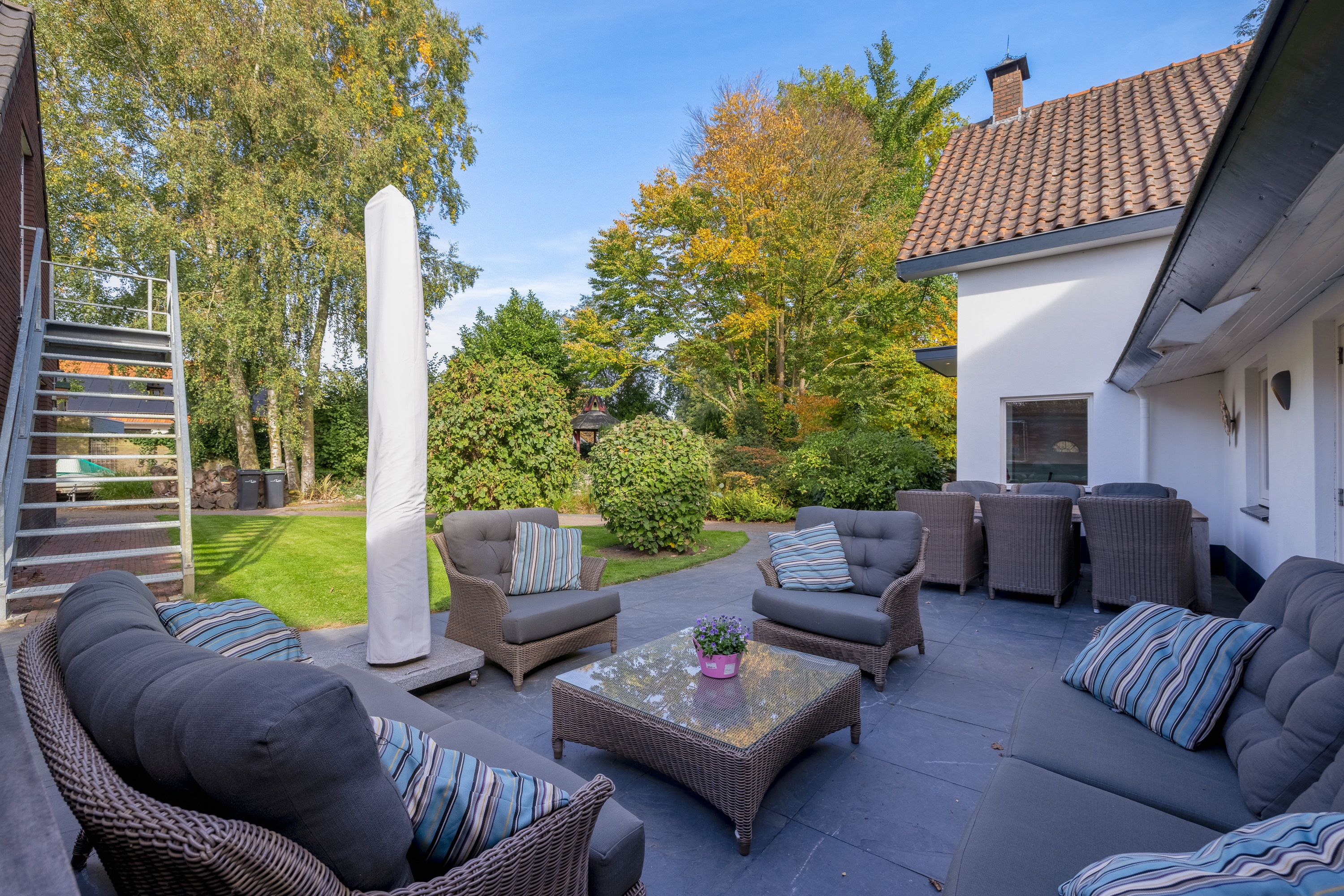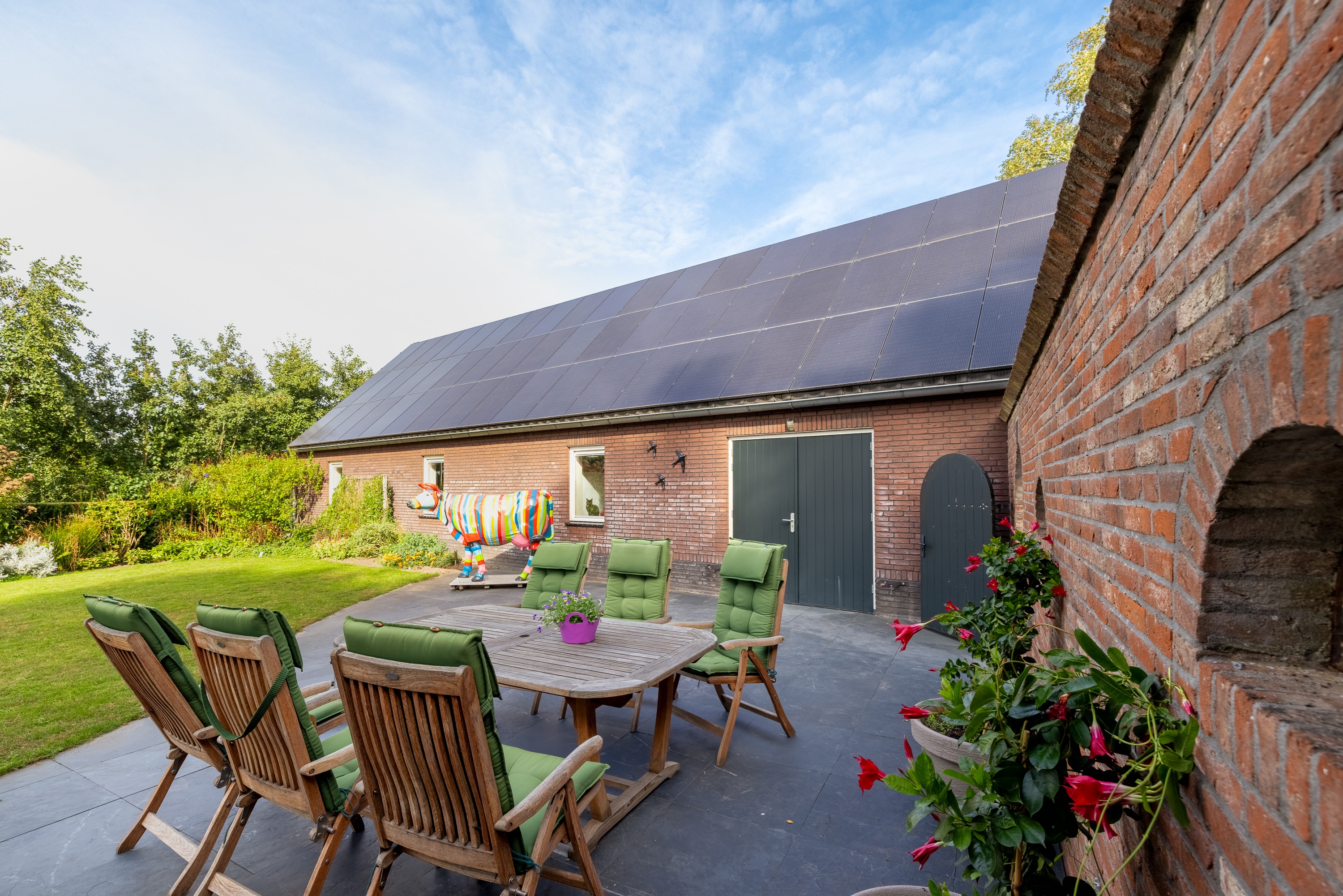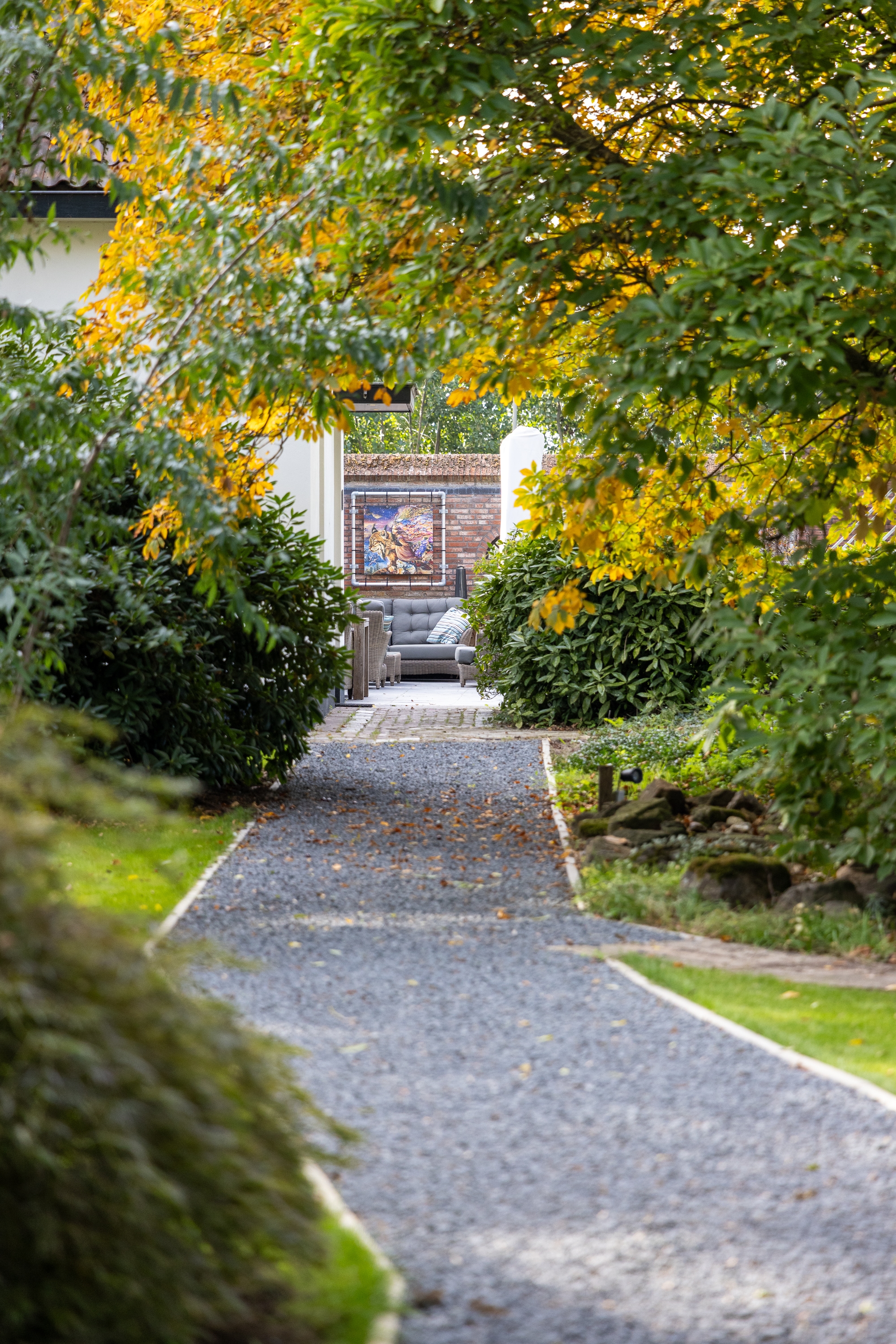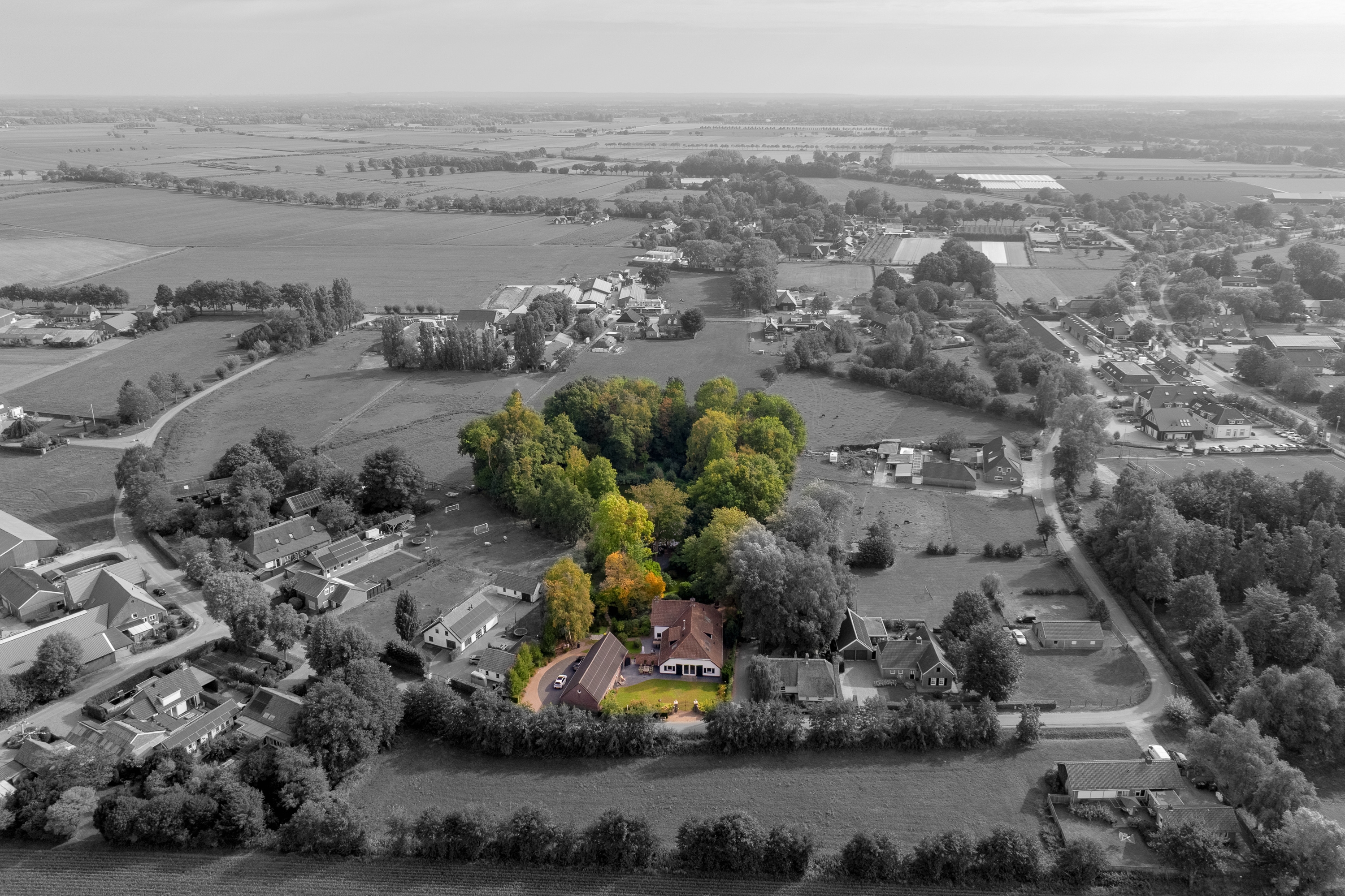 Het royale perceel van ruim 8.500 m² biedt een oase van rust en volledige privacy. Meerdere terrassen, volwassen groen en vrij uitzicht over de omliggende landerijen maken het geheel compleet. De lange oprijlaan, het verzorgde erf en de landelijke ligging aan een rustige straat versterken het gevoel van een privé-landgoed, maar dan met het comfort en de luxe van deze tijd.