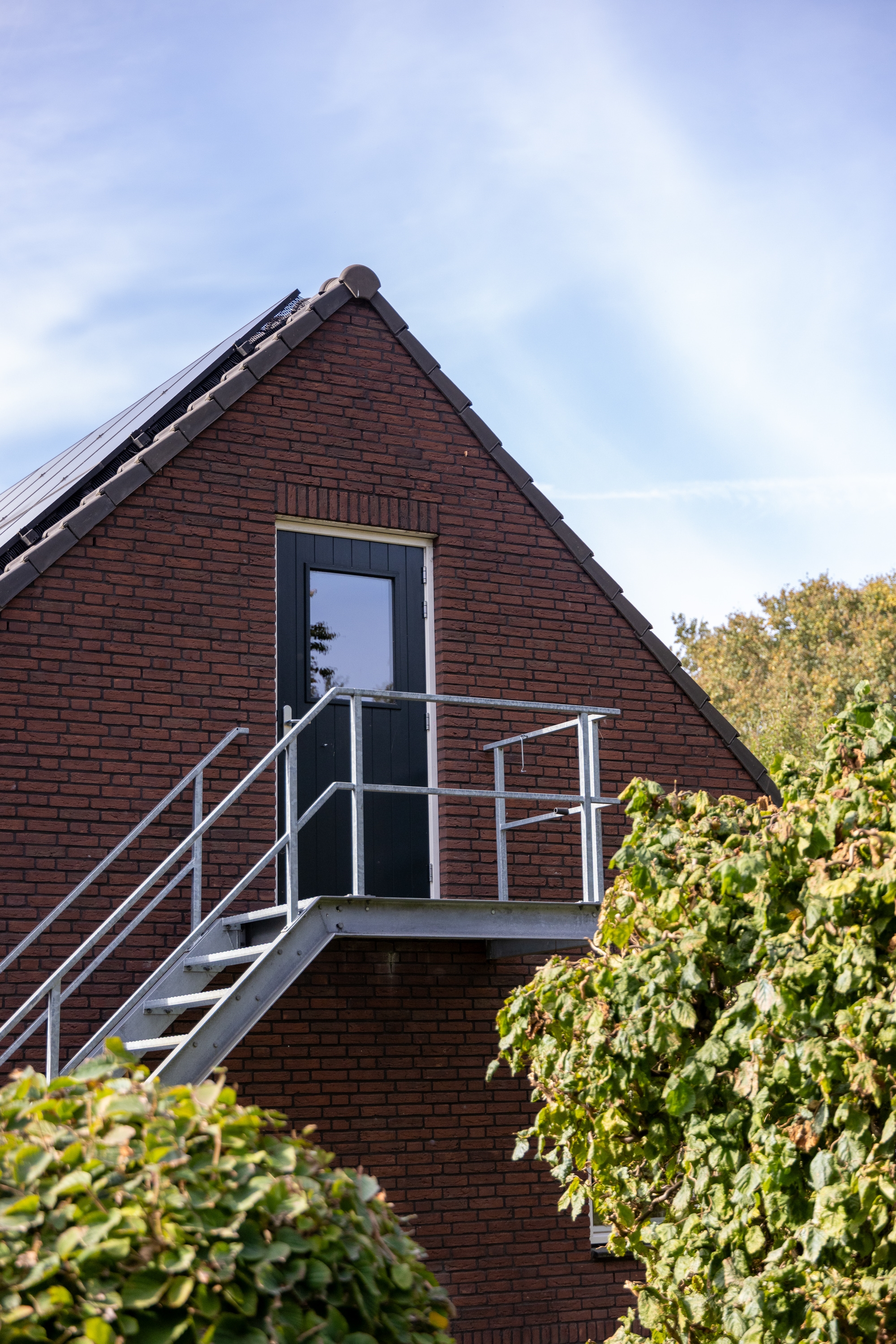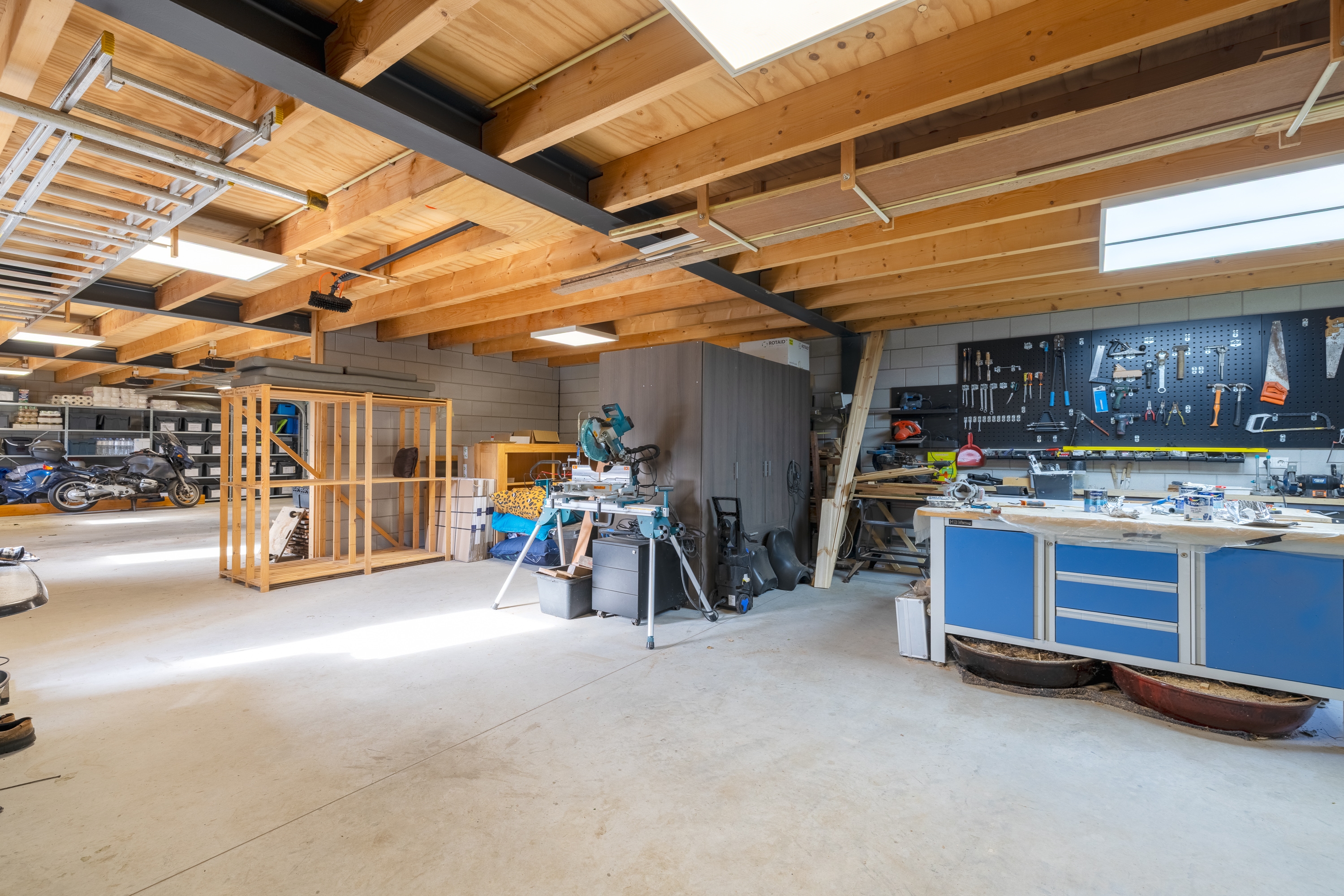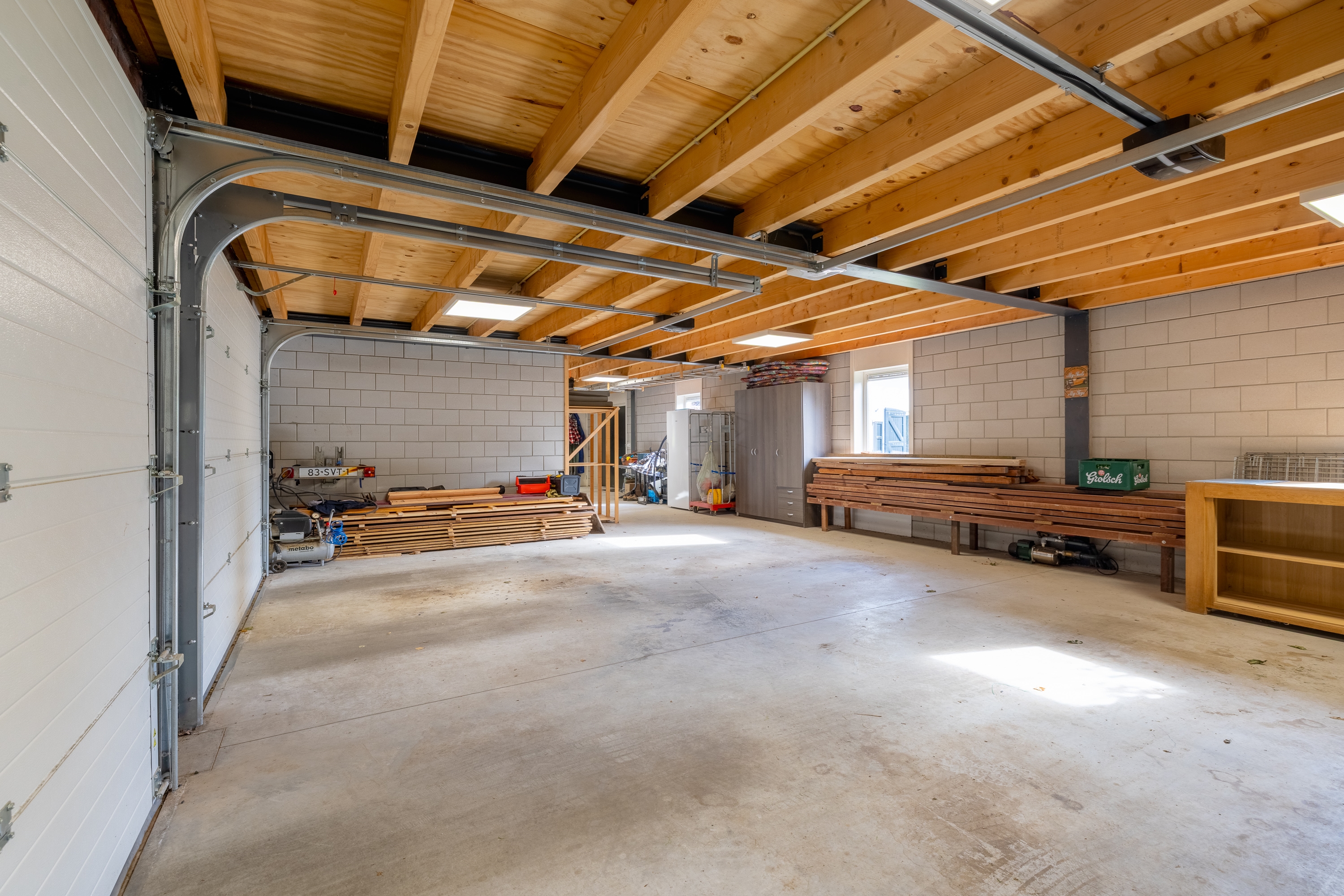Schuur & garage De vrijstaande schuur en luxe garage zijn in stijl, maatvoering en afwerkingsniveau volledig afgestemd op de woonboerderij. Daardoor ogen ze niet als bijgebouwen, maar als een vanzelfsprekende uitbreiding van het geheel zowel esthetisch als functioneel. Het gebouw is hoogwaardig gebouwd, volledig geïsoleerd en voorzien van eigen sanitair en een ruime werkplaats. Boven de werkruimte bevindt zich een ruime bergzolder, bereikbaar via een buitentrap. Deze praktische indeling maakt het eenvoudig om de volledige hoogte van de schuur te benutten en grotere spullen, zoals loungesets of seizoensmeubilair, comfortabel op te bergen. De uitstraling en afwerking sluiten naadloos aan bij de woning, waardoor het geheel één harmonieus en exclusief ensemble vormt.