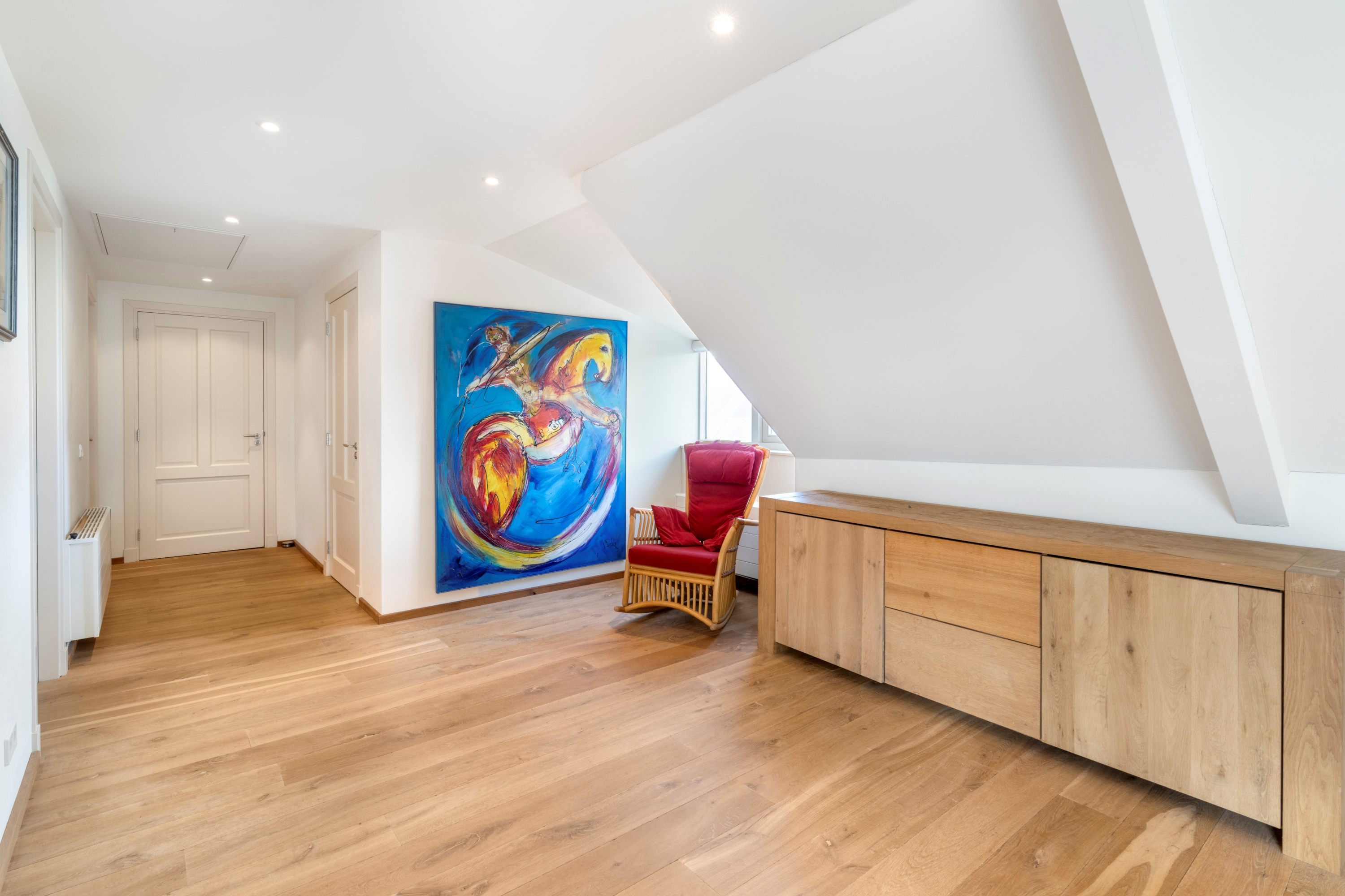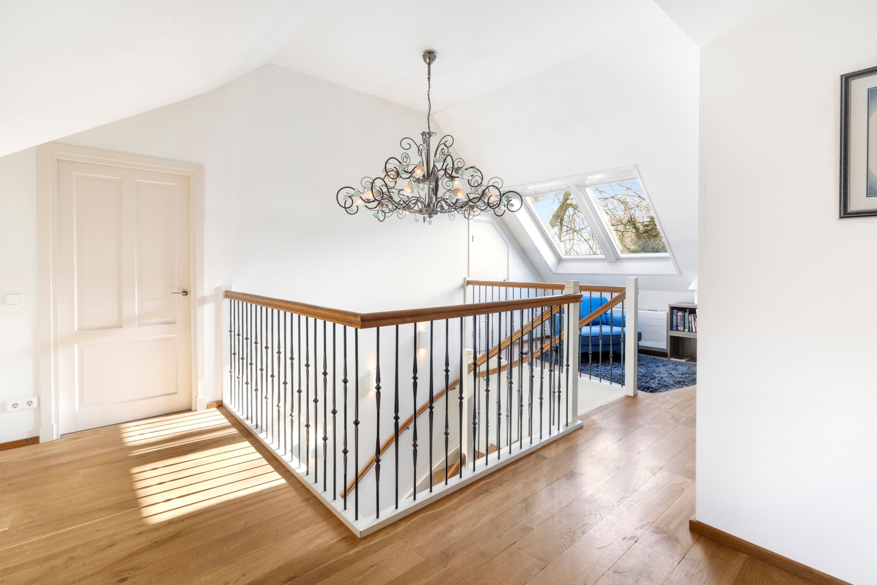 De eerste verdieping beschikt over een royale overloop met vide en prachtige lichtinval.