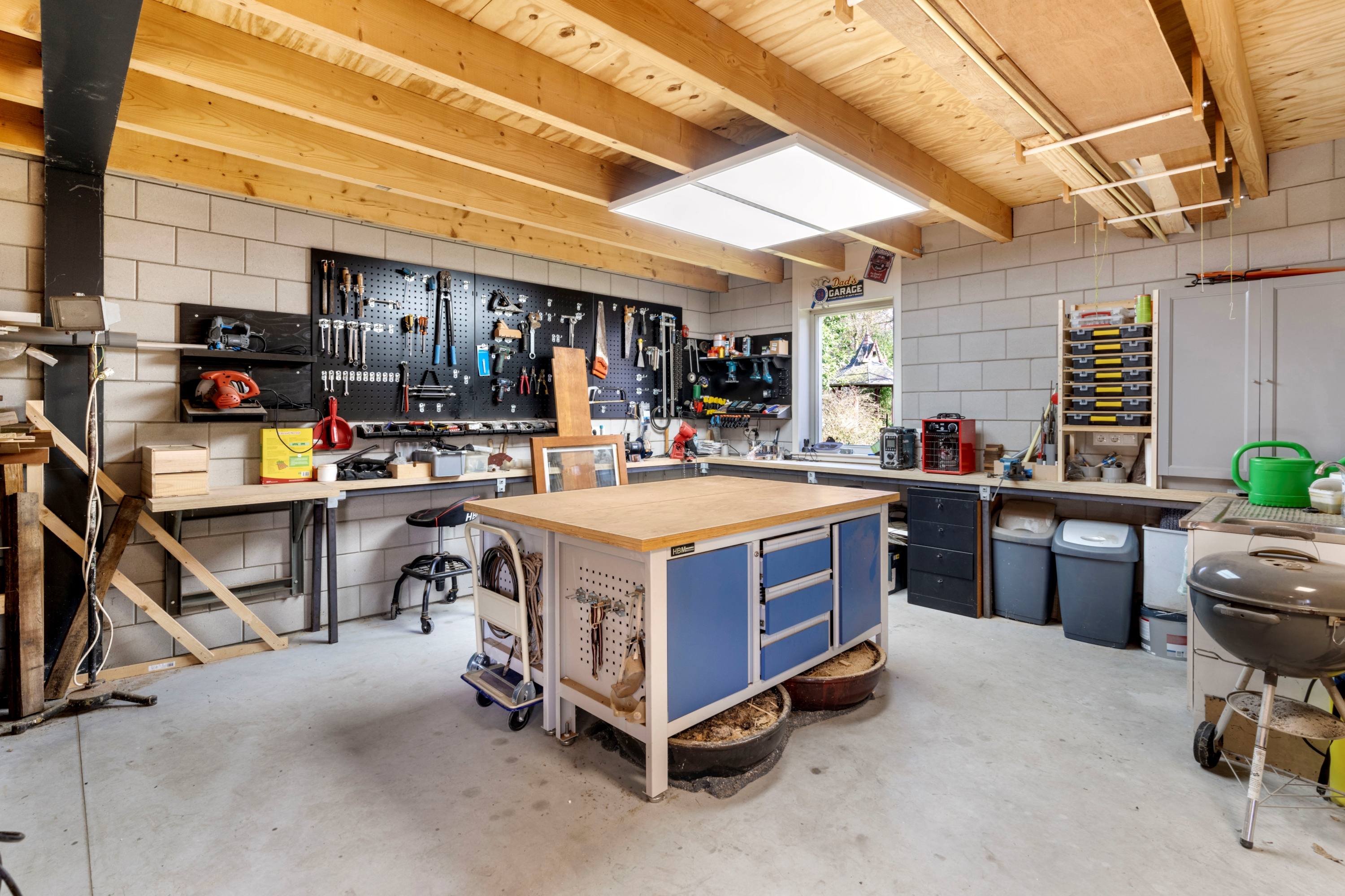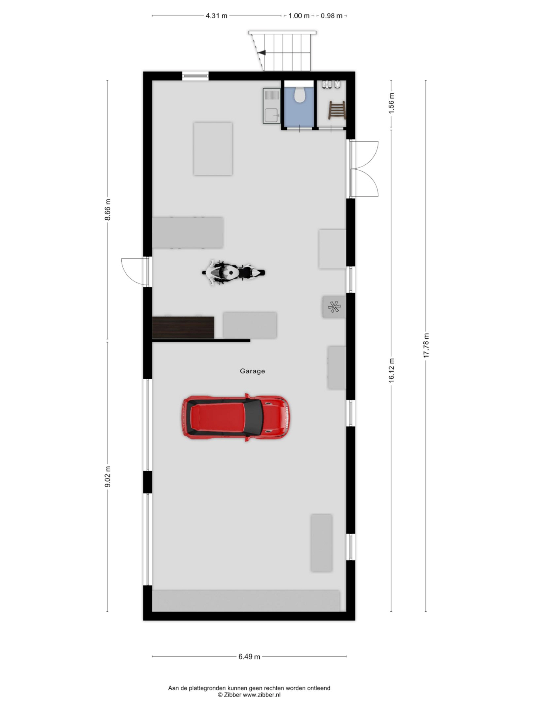 Boven de werkruimte bevindt zich een bergzolder, bereikbaar via een buitentrap. Ideaal voor opslag van bijvoorbeeld tuinmeubilair of seizoensspullen.
