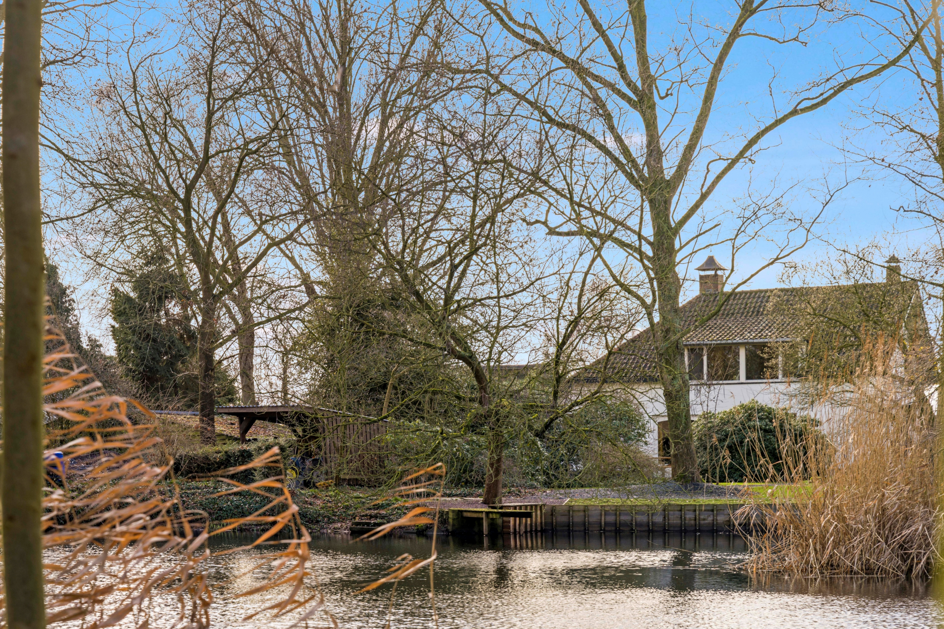 Achter op het perceel ligt een vijver met fontein, houten steigers en een karakteristieke ijsvogelmuur. Hier ervaart u het buitenleven op zijn best, met het geluid van water en vogels als natuurlijke achtergrond.