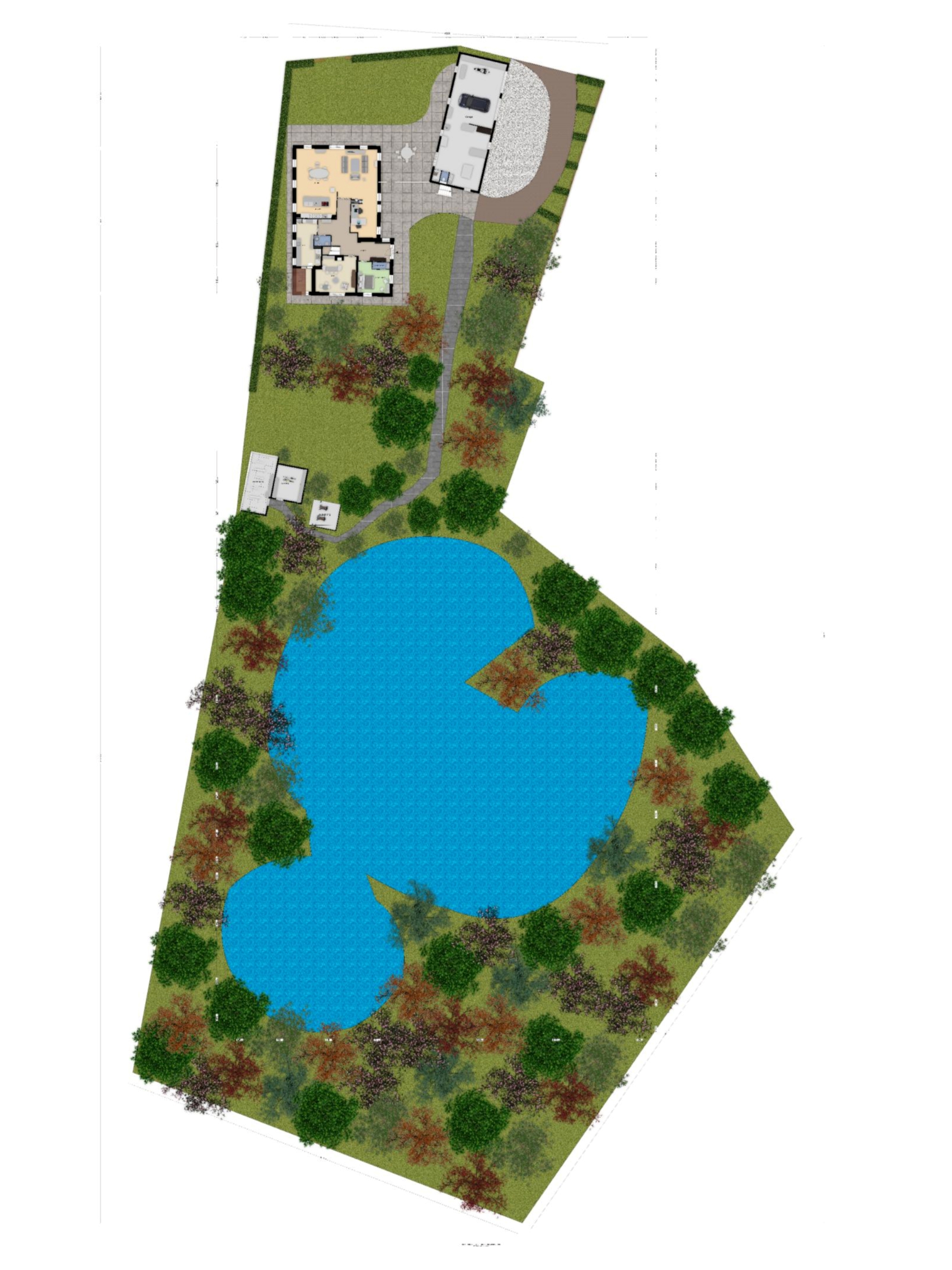 De tuin is aangelegd als een parkachtig landschap met: