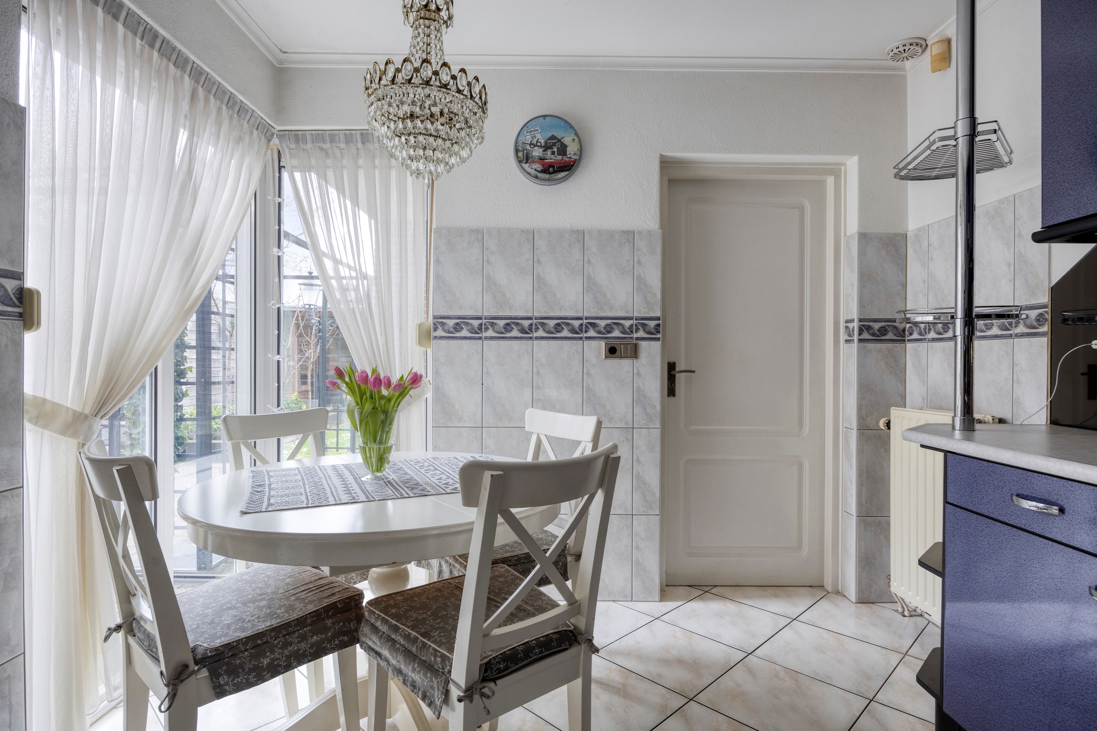 Aansluitend bevindt zich de praktische bijkeuken met extra opslagmogelijkheden en aansluitingen voor wasapparatuur. Een waardevolle toevoeging die zorgt voor rust en organisatie in huis.