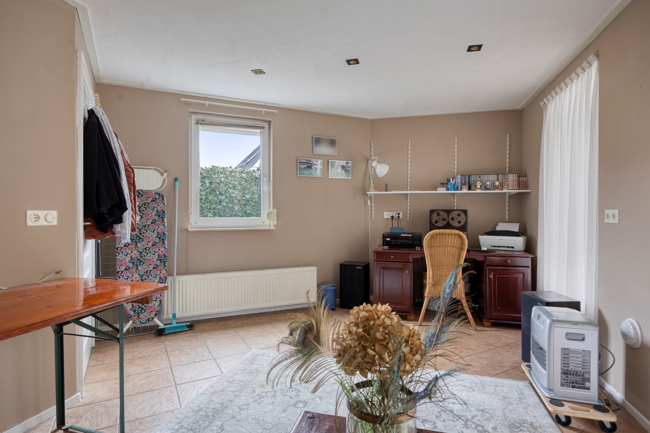 Aan de achterzijde treft u een multifunctionele extra kamer, perfect geschikt als praktijkruimte, kantoor aan huis, speelkamer of slaapkamer op de begane grond. Dankzij de ligging en indeling is wonen en werken hier optimaal te combineren.