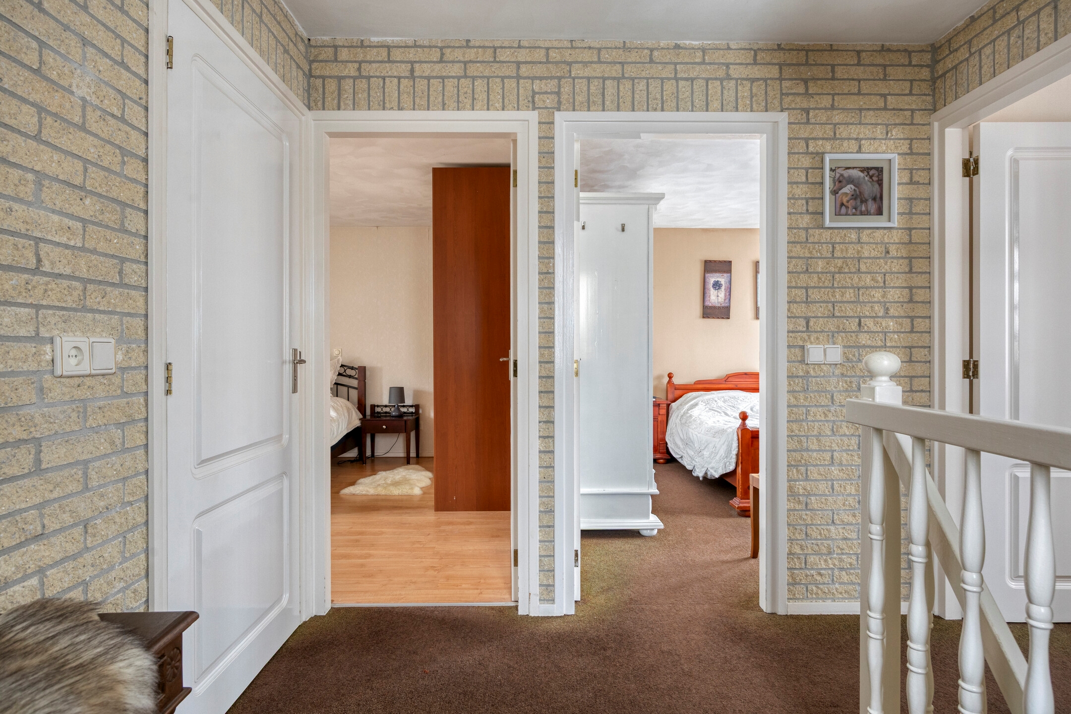 De overloop voelt open en licht aan. Hier bevindt zich tevens de airconditioning, wat zorgt voor een aangenaam binnenklimaat tijdens warme zomerdagen. De overloop verbindt alle vertrekken op een logische en comfortabele manier.