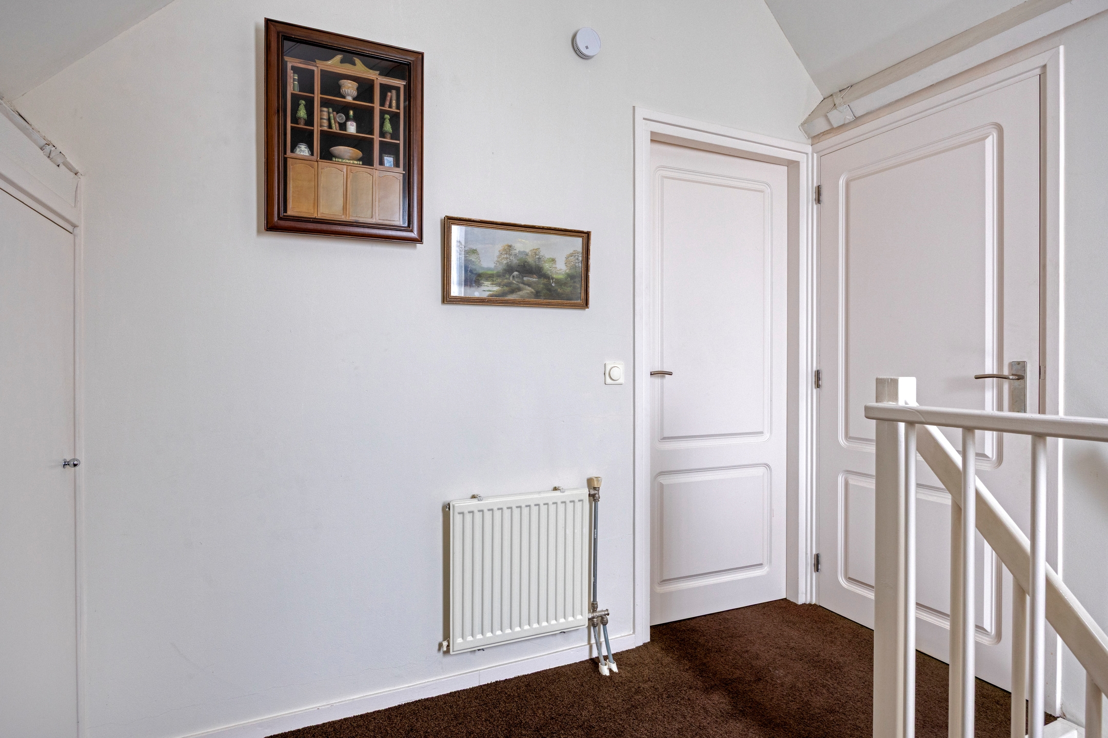 De overloop biedt toegang tot de stookruimte, waar de cv-installatie keurig is opgesteld. Daarnaast is hier extra bergruimte aanwezig, waardoor alles netjes uit het zicht kan worden opgeborgen.