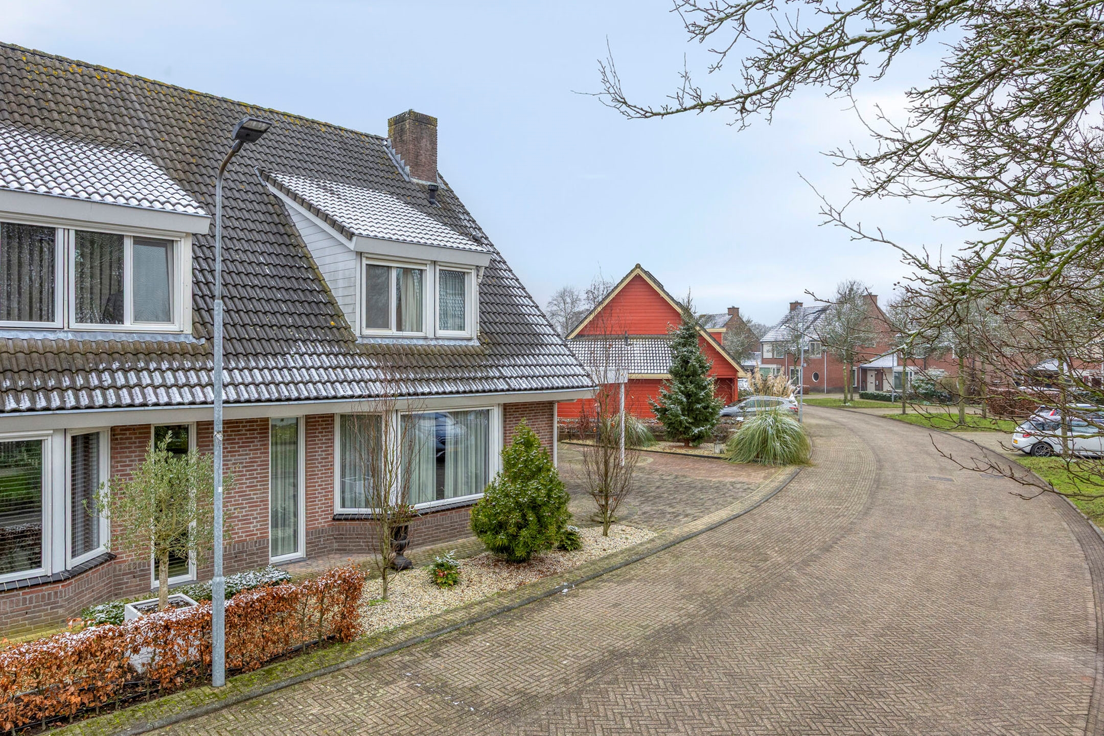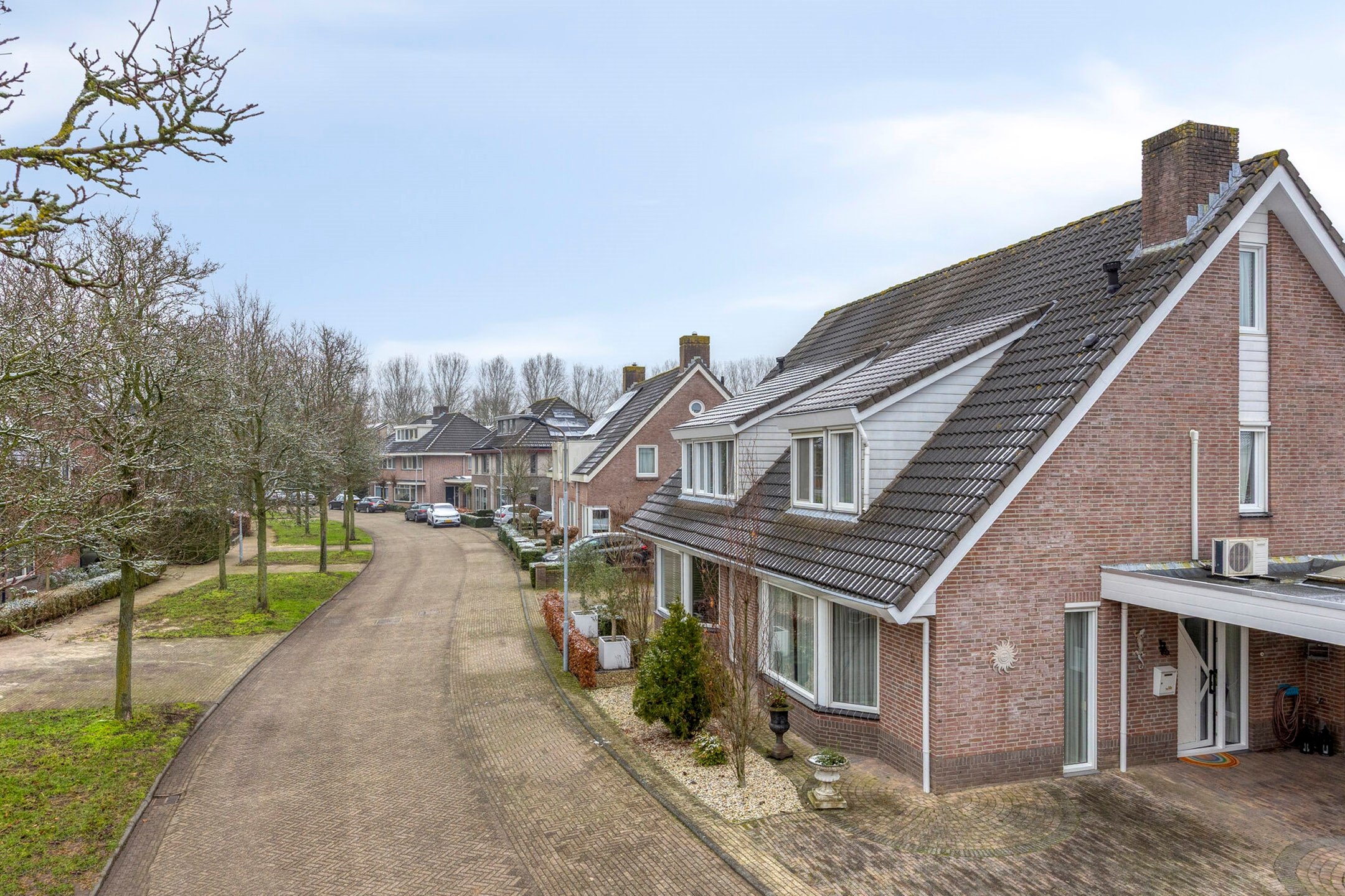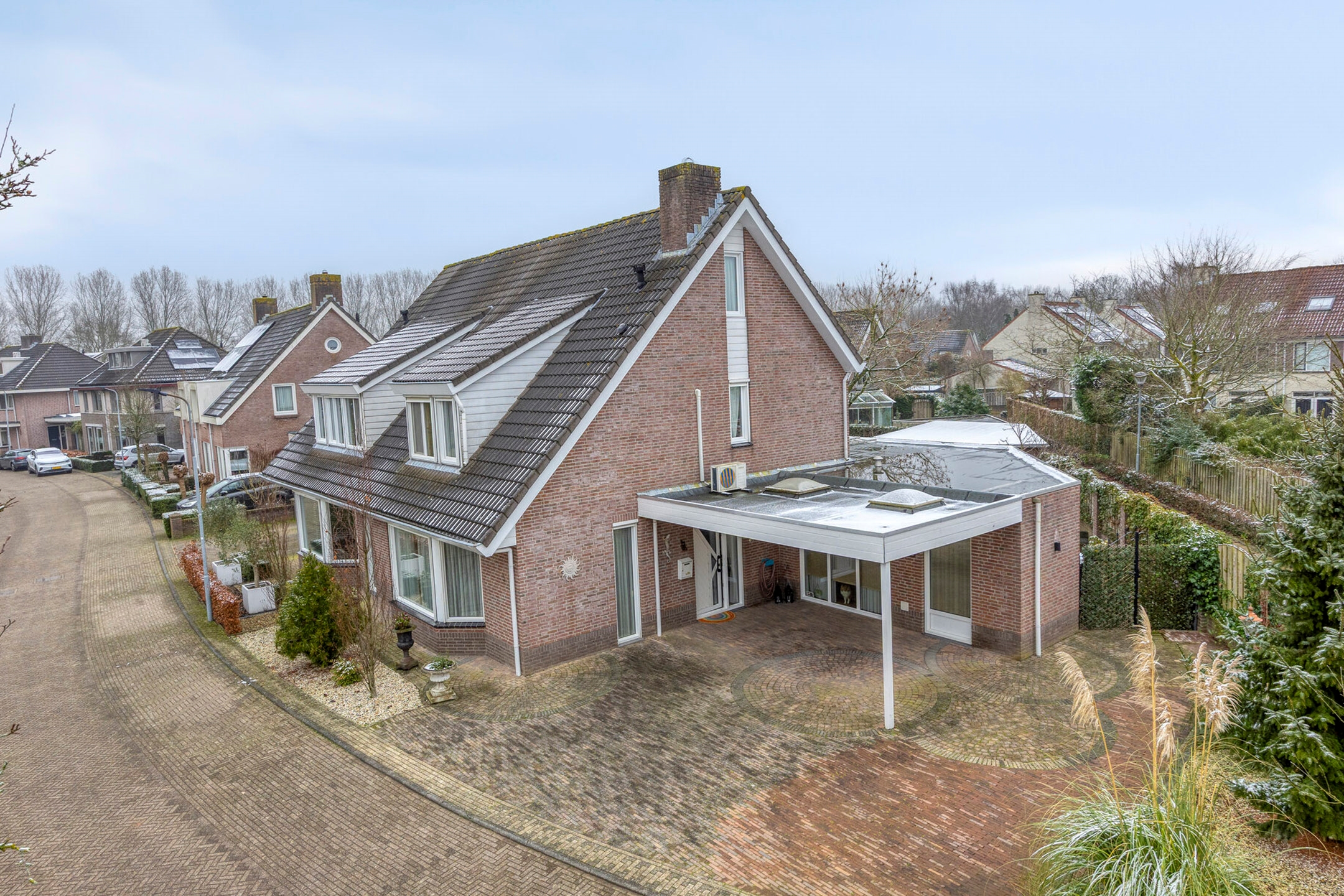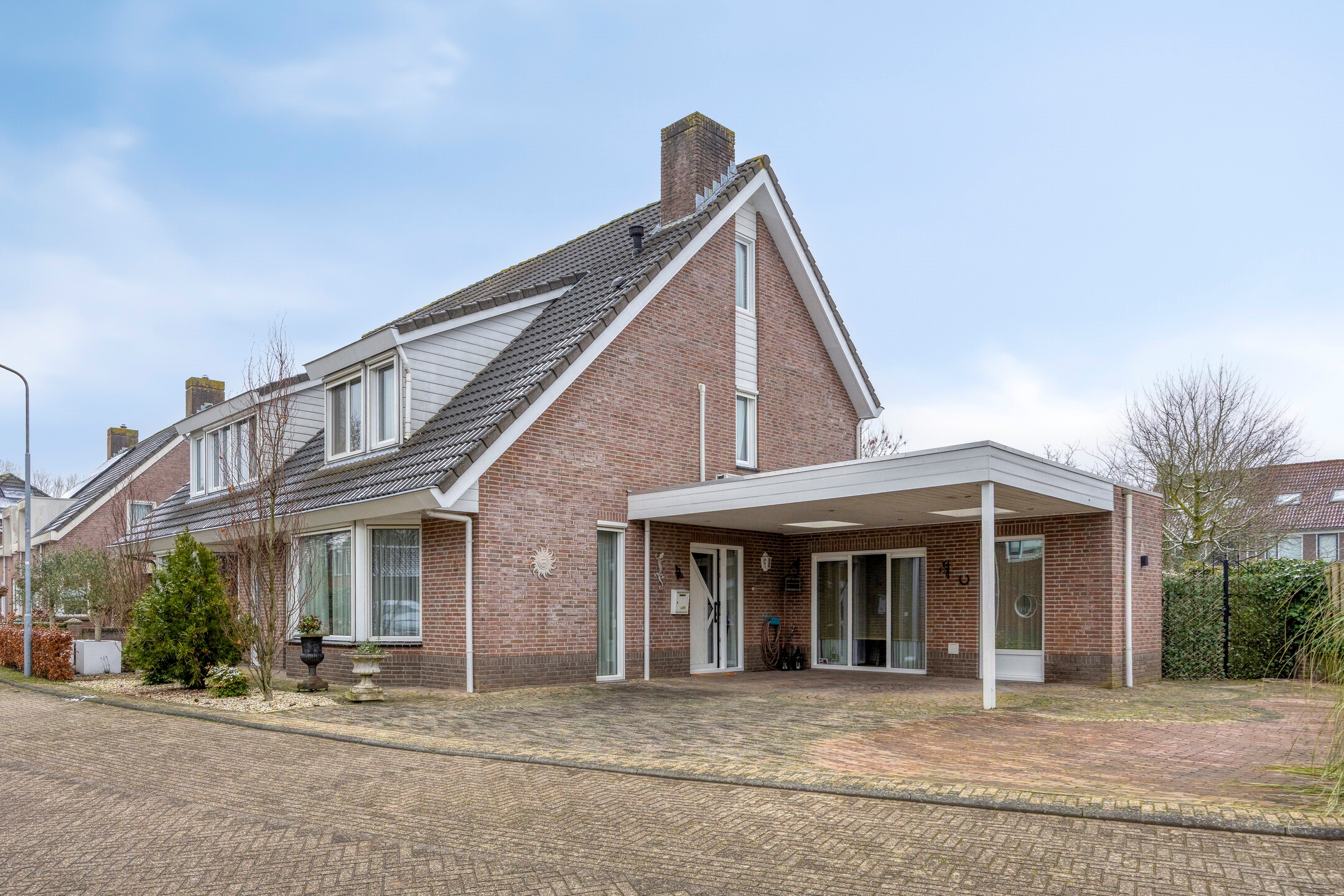 De voortuin en oprit bieden ruimte voor drie auto’s én een caravan, aangevuld met een carport. Praktisch, royaal en comfortabel.